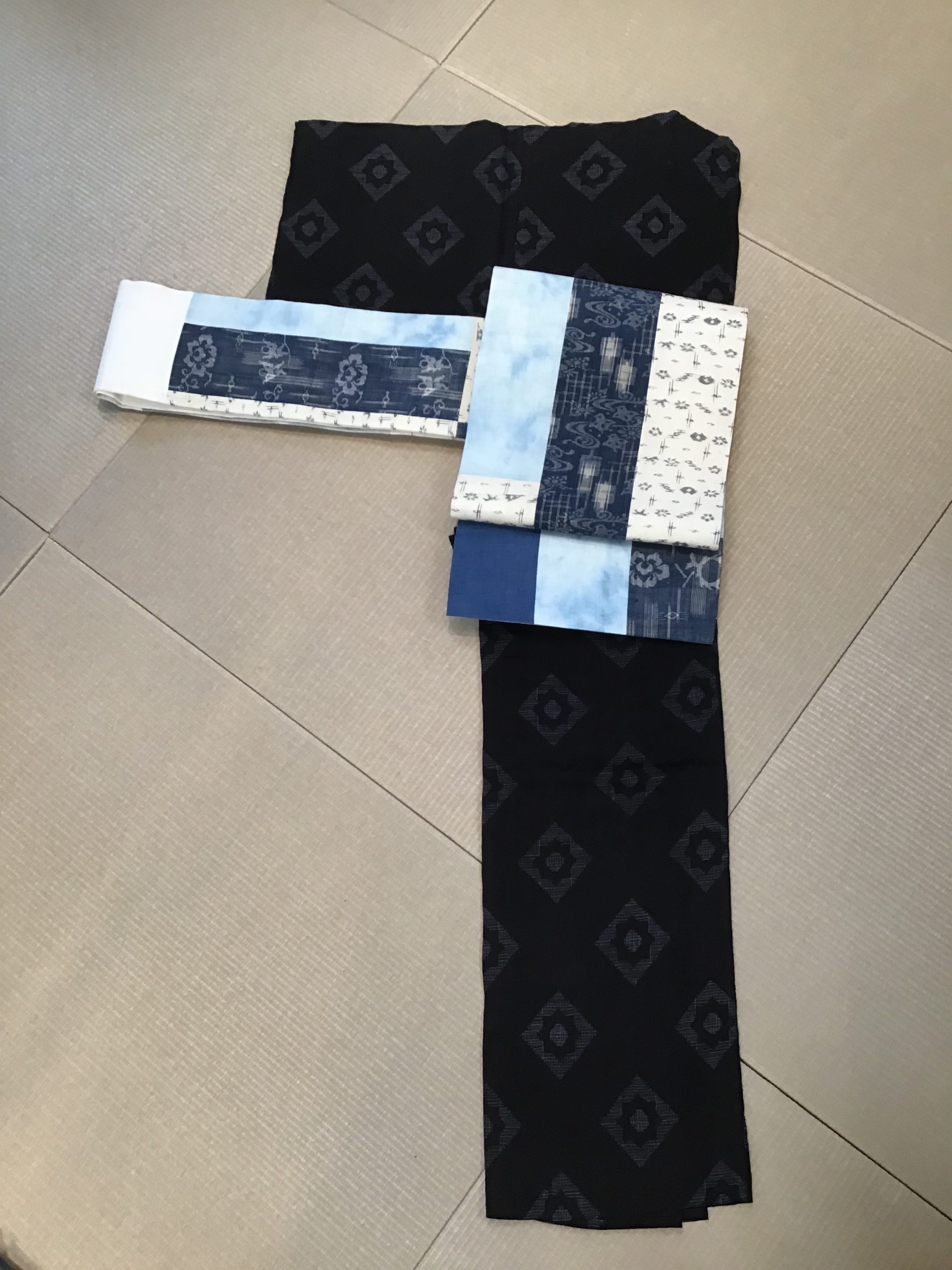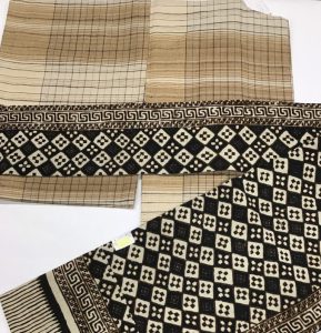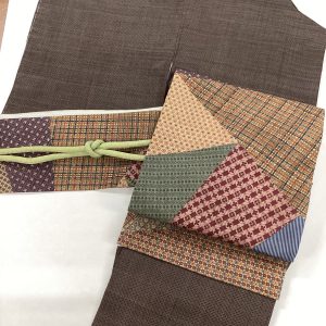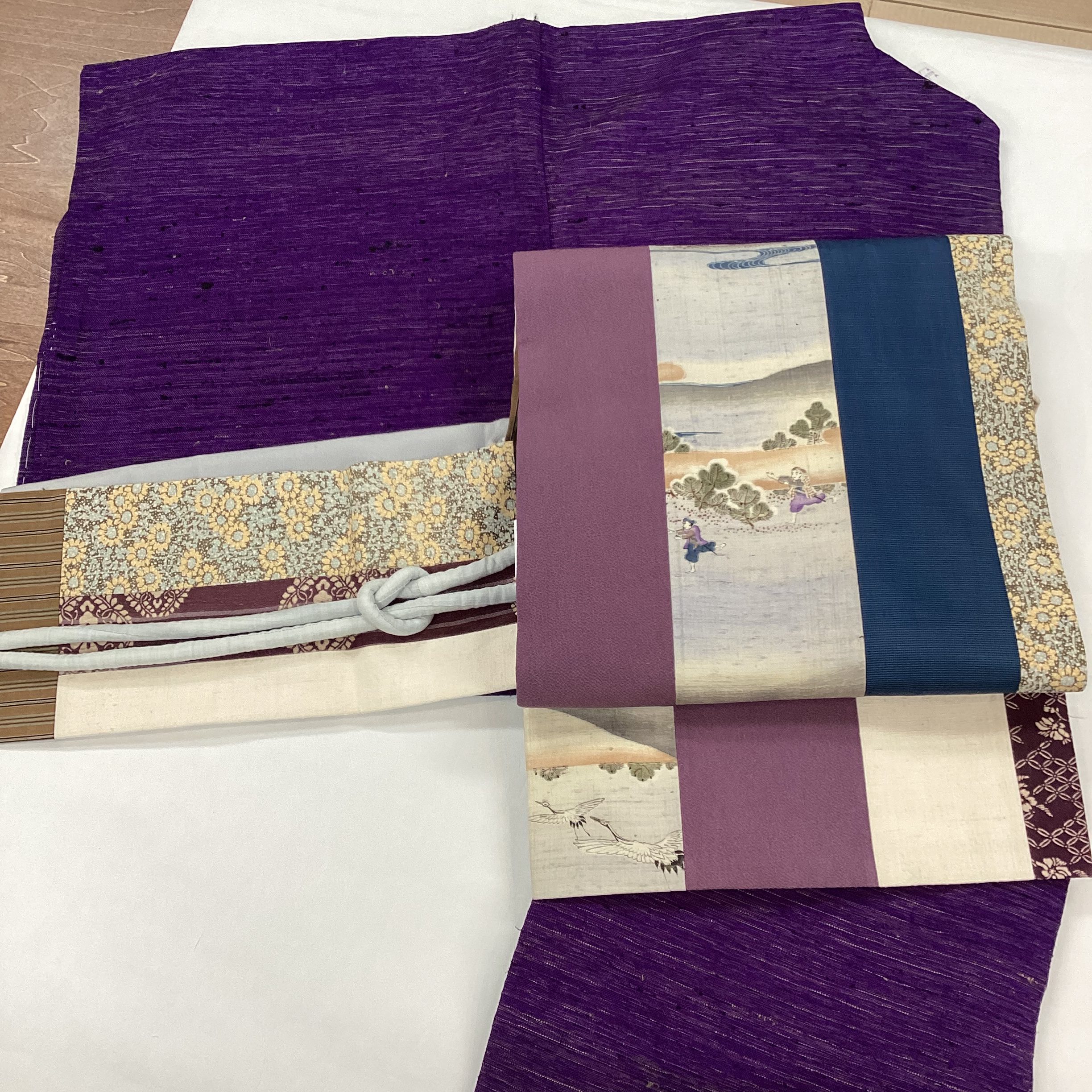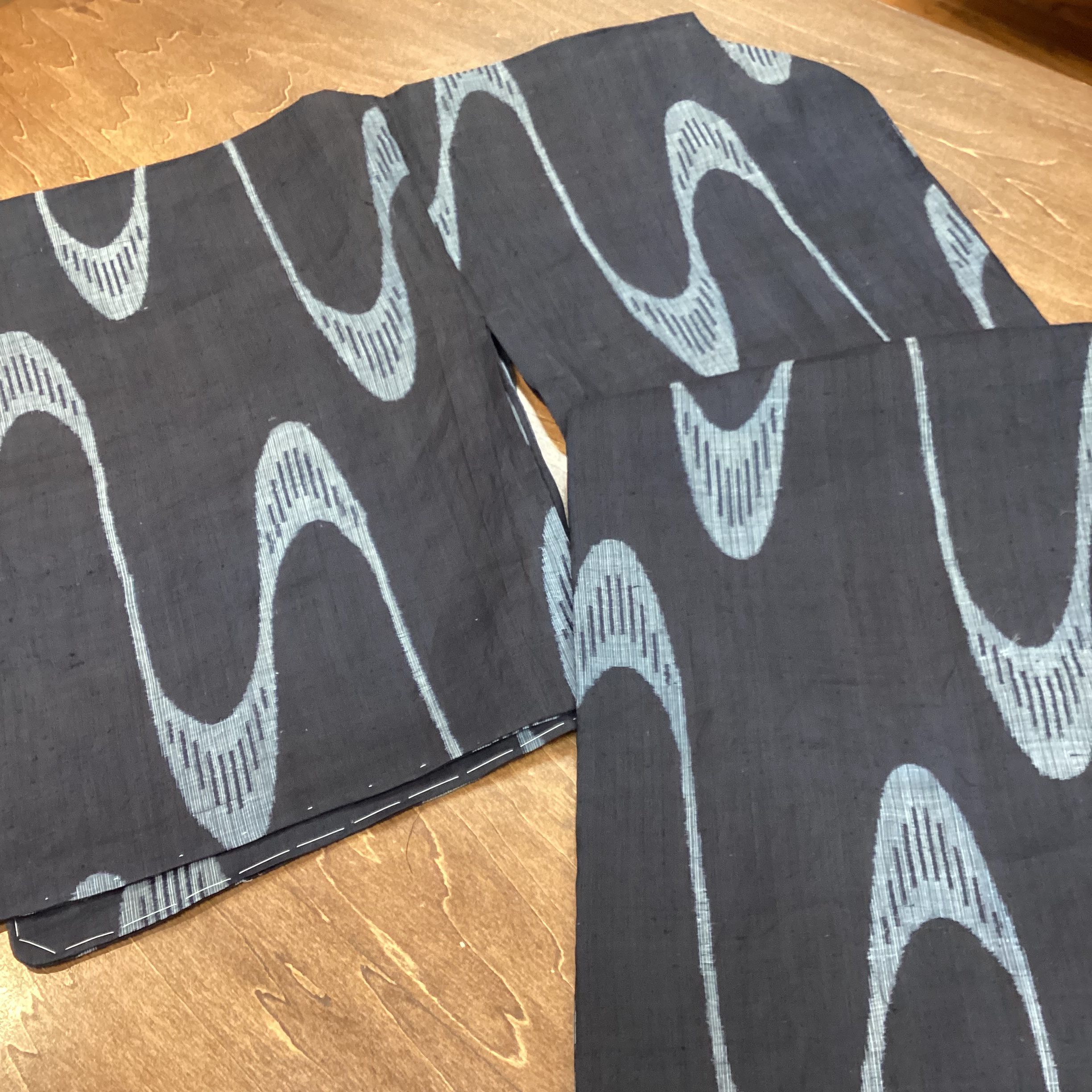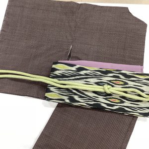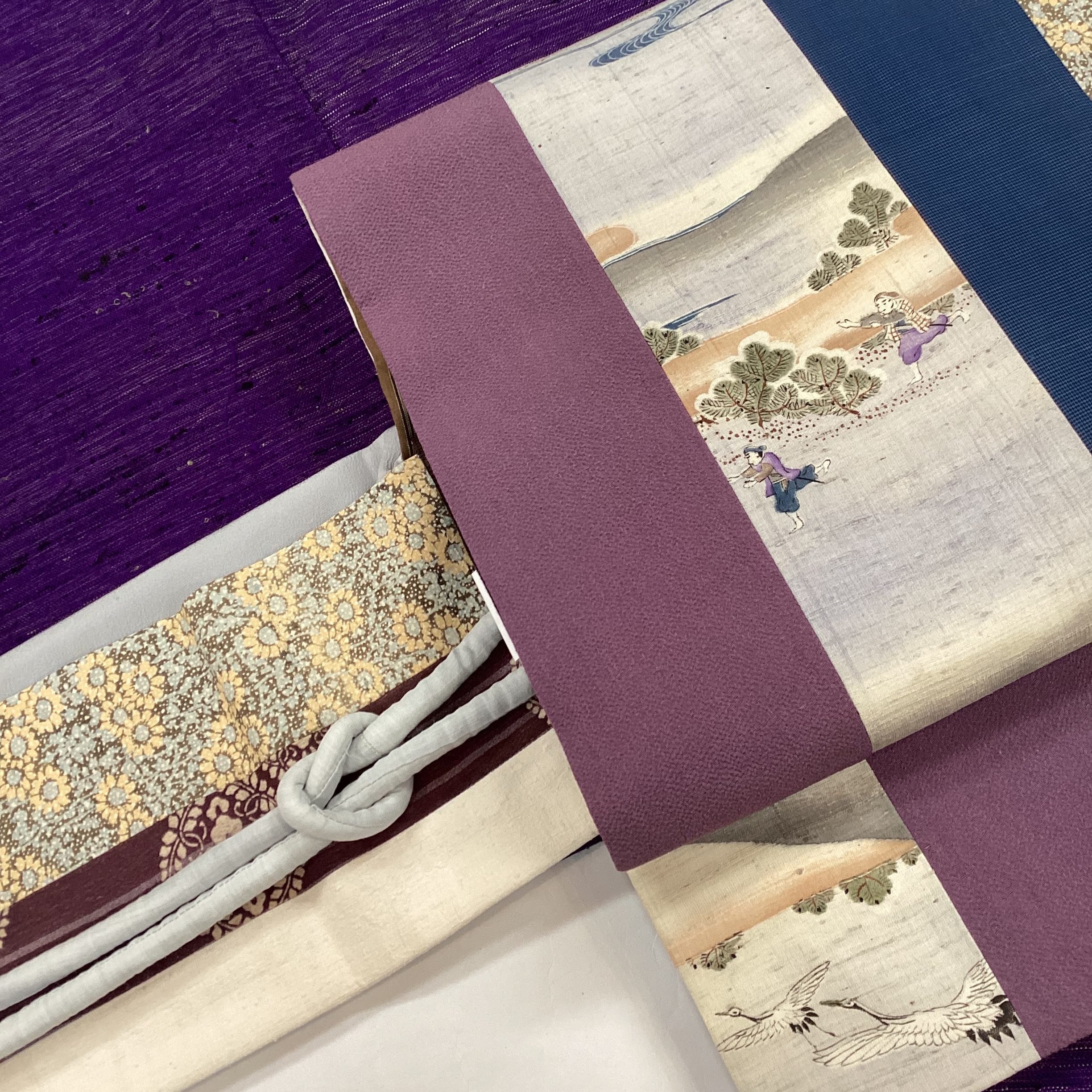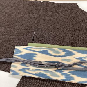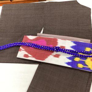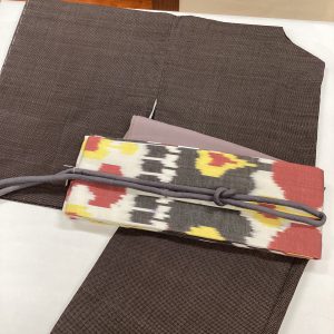 見えないところは、継いでいるのがわかります。帯の前柄は、無地の芭蕉布を出すこともできます。