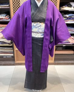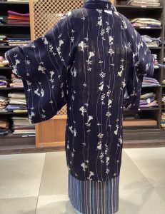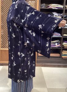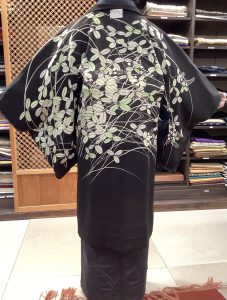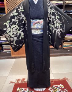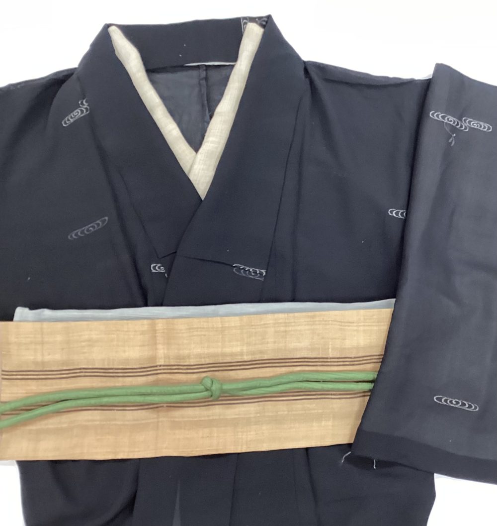 もともと柄が少ない着物なので、かけ衿には柄がなく、着ると、衿はほぼ黒地で、すっきりしています。