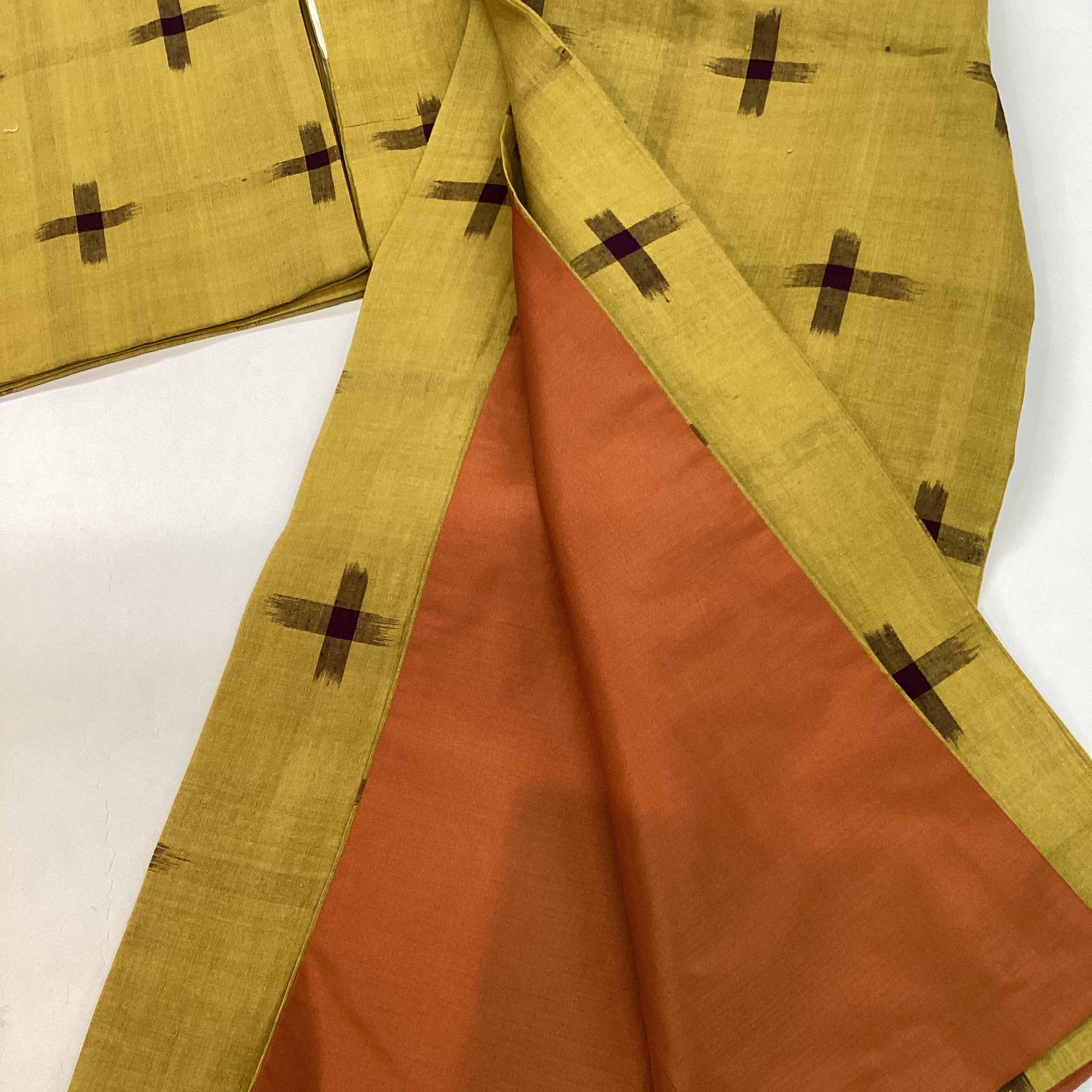 鬱金色に紫の十字絣紬 66,000円 裄1尺7寸2分、身丈4尺1寸