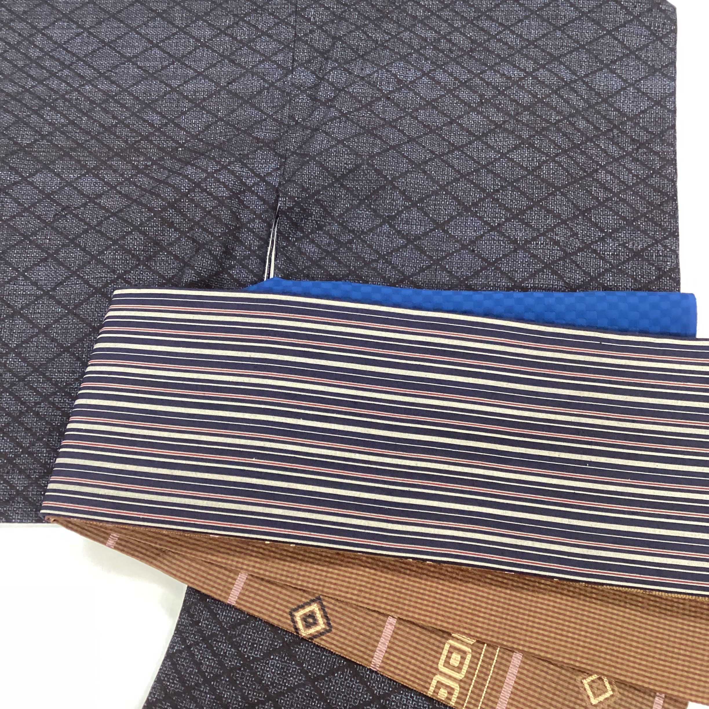 この他にもお手頃価格の半幅帯がいろいろ入荷しています。丸ぐけをアクセントにお楽しみください!