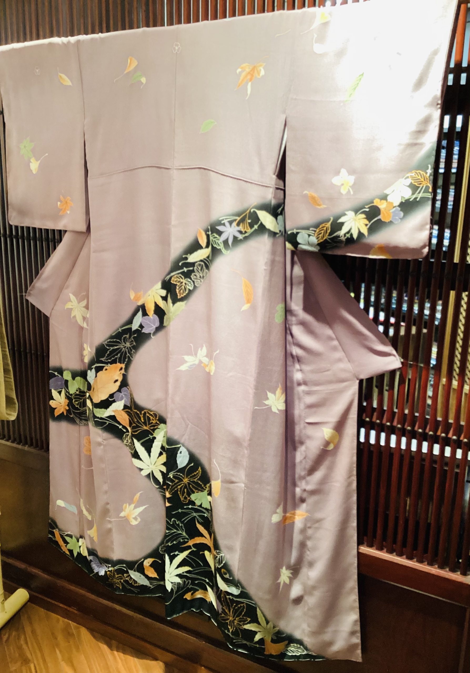 合わせたのは、結城紬の色無地。こちらも大変便利な一枚です。