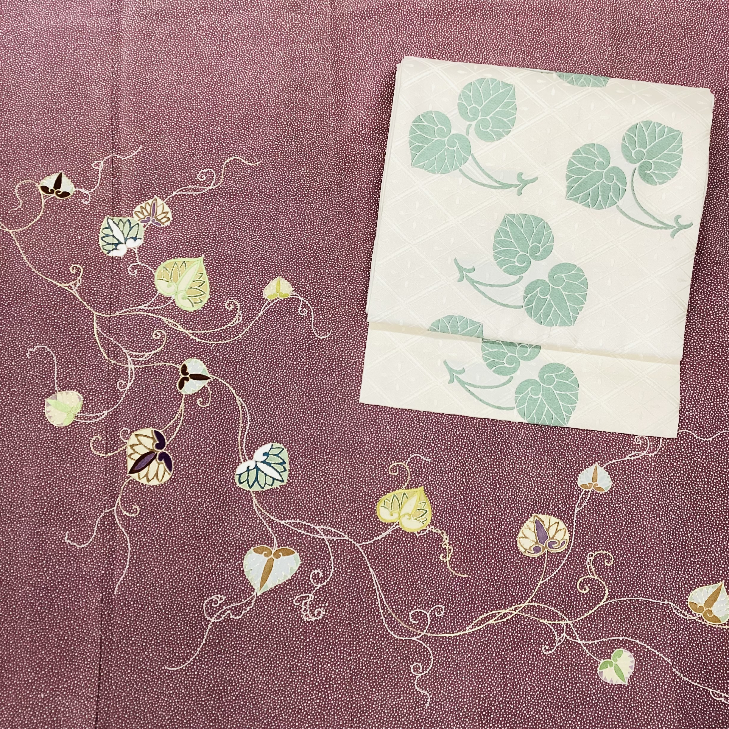 本日は葵祭にちなんで、葵を織りだした帯と葵を描いたお着物をご紹介いたします。都の平安と豊穣の祈りが込められた「葵」を身につけて、爽やかな5月の風の中を銀座にお出かけになりませんか?