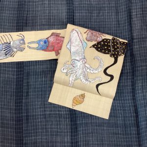 “唐物写し”という少し難しげな響きのある古籠たち、その繊細で超絶な技巧に驚きましたが、いくつかの籠には、圷奈保美さんによる野の花のなげいれがなされ、重厚な空間を、穏やかなものにやさしく変えていました。