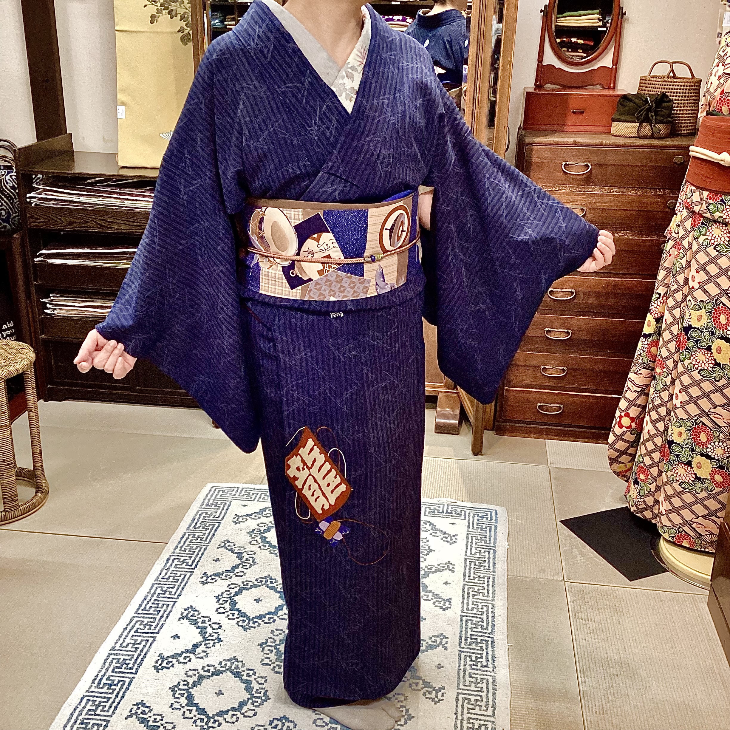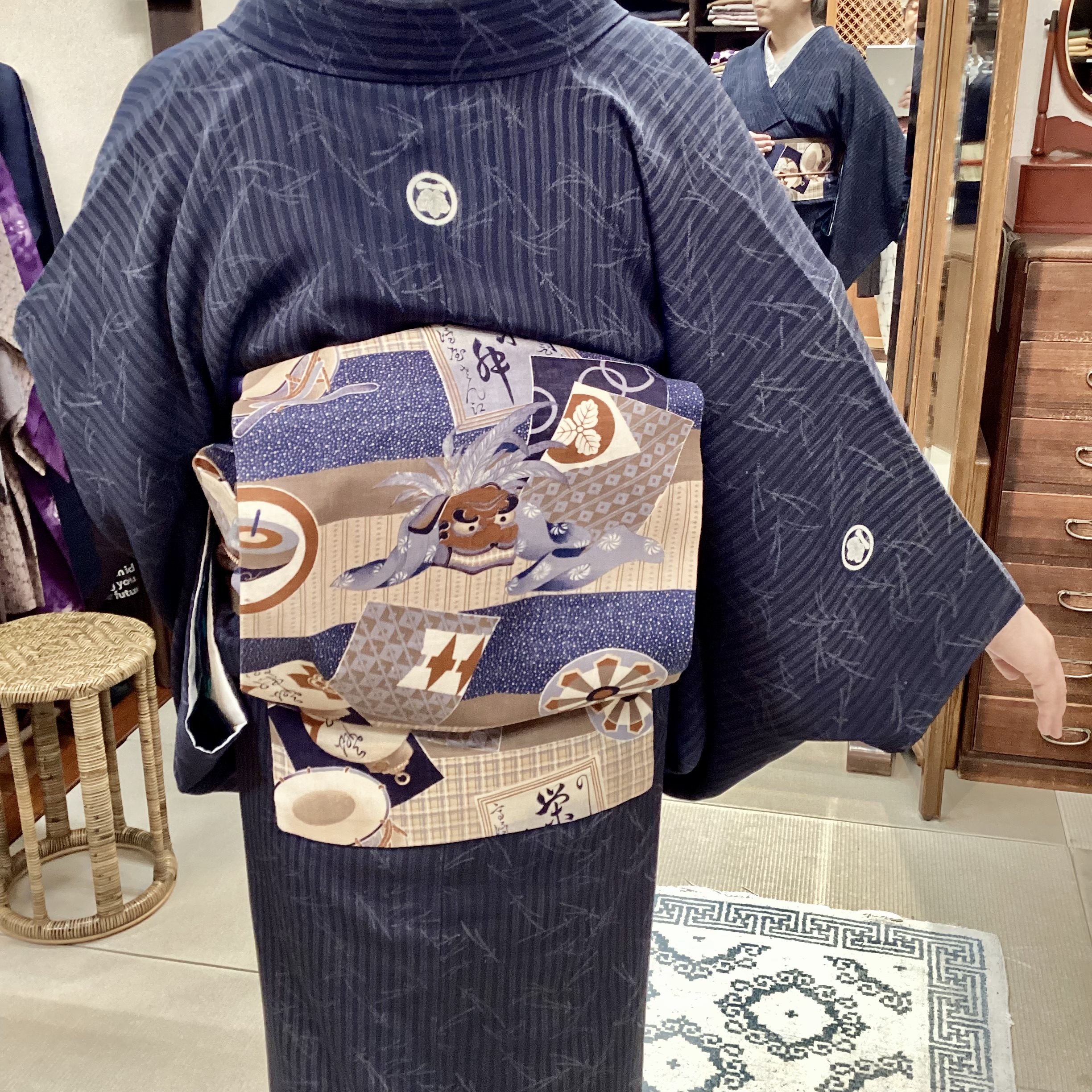 次にご紹介するのも浦野理一の着物と帯。しっかりとした風合いで少しかしこまったお出かけにもぴったり。