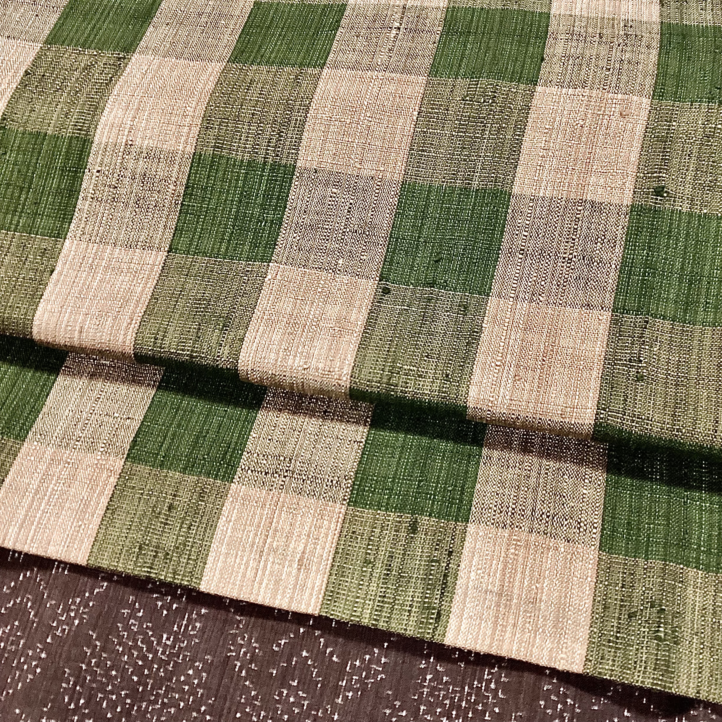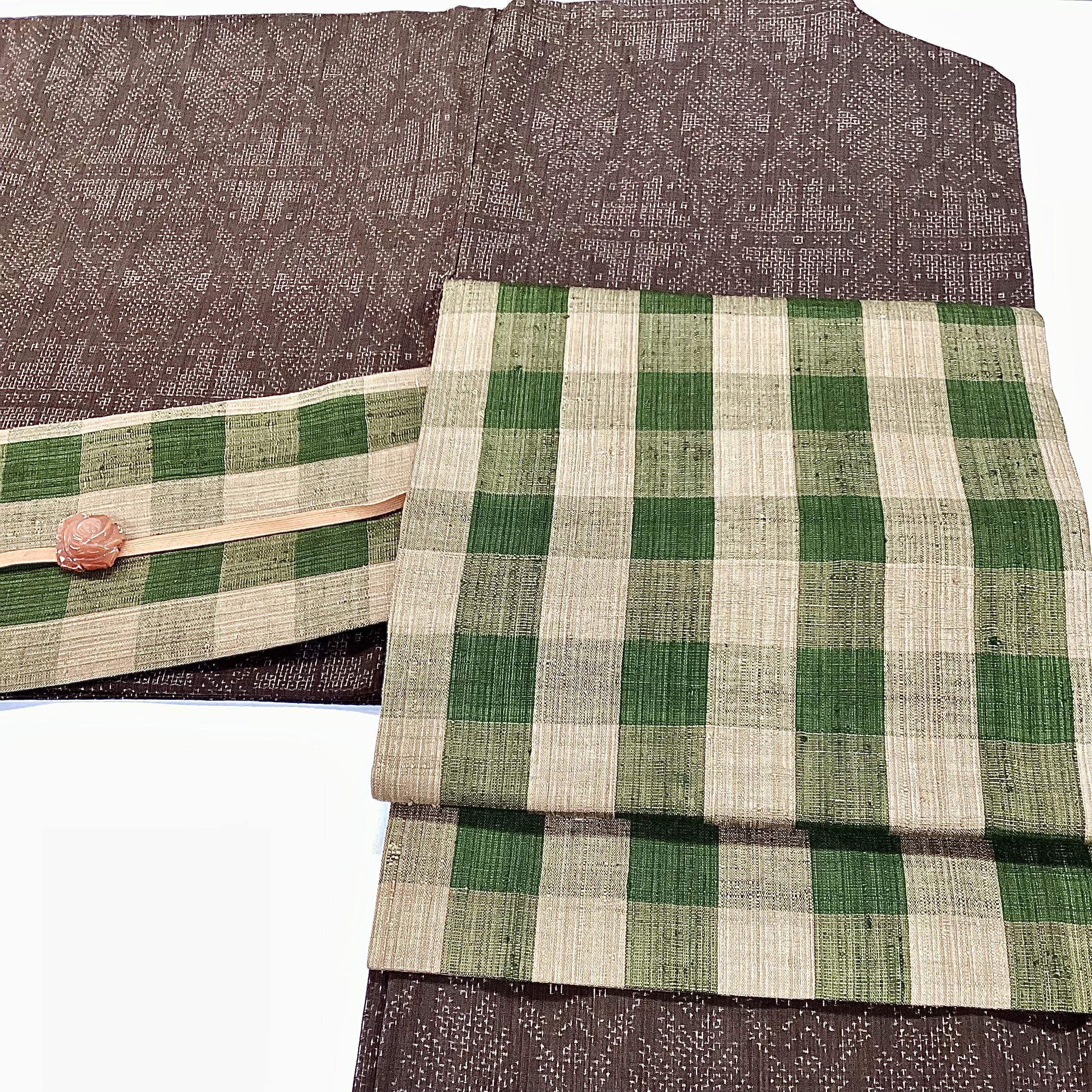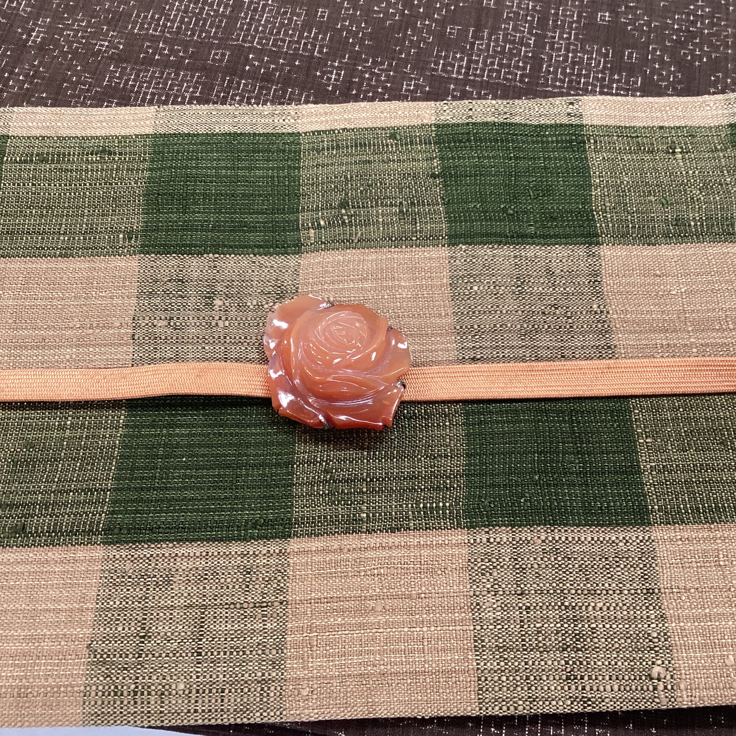 23-02-07 浦野理一着物280,000円1尺6寸8分、身丈4寸1分、23-12-27浦野理一緑帯95,000円、メノウ帯留 13,200円(全て税込)