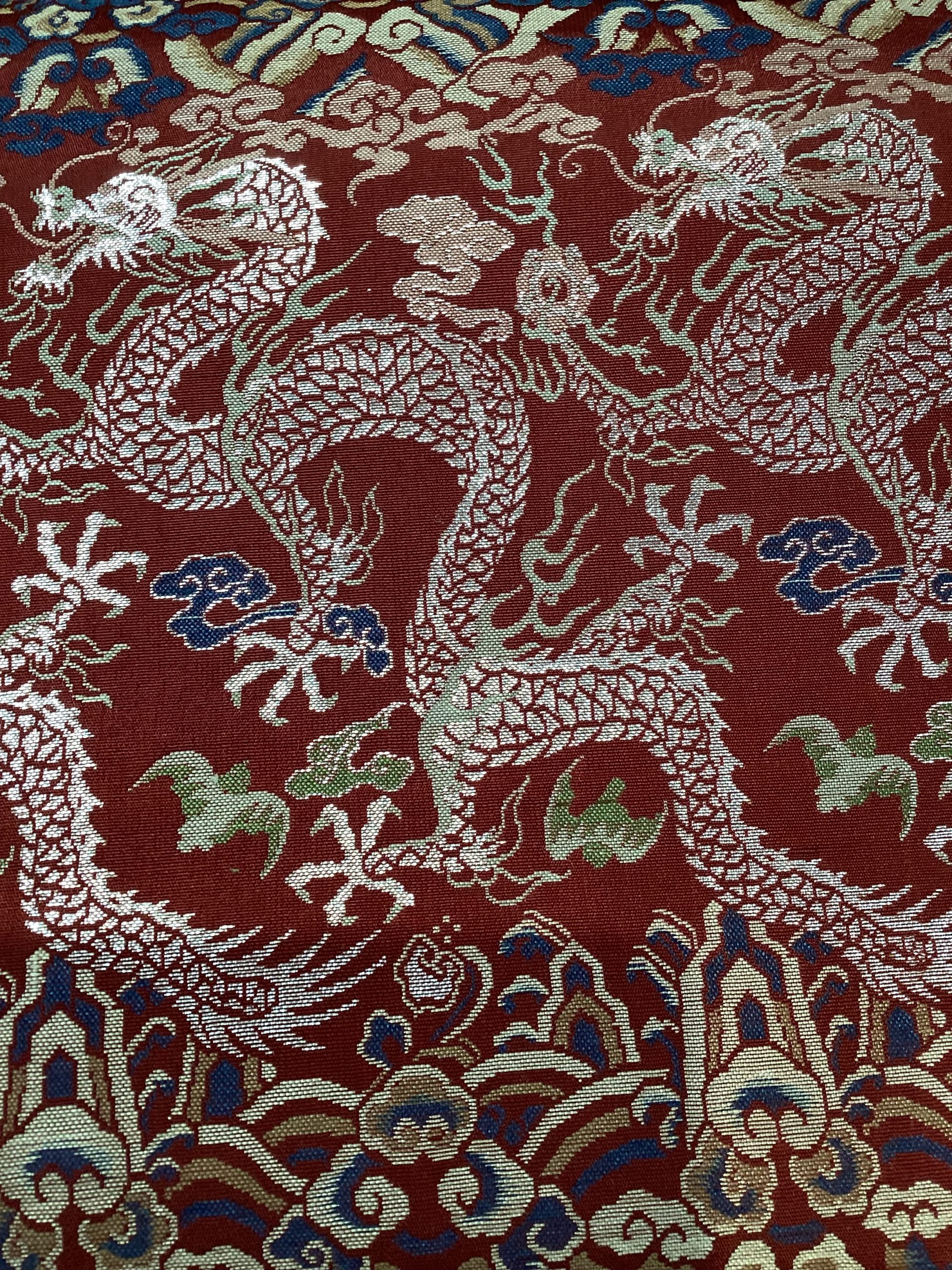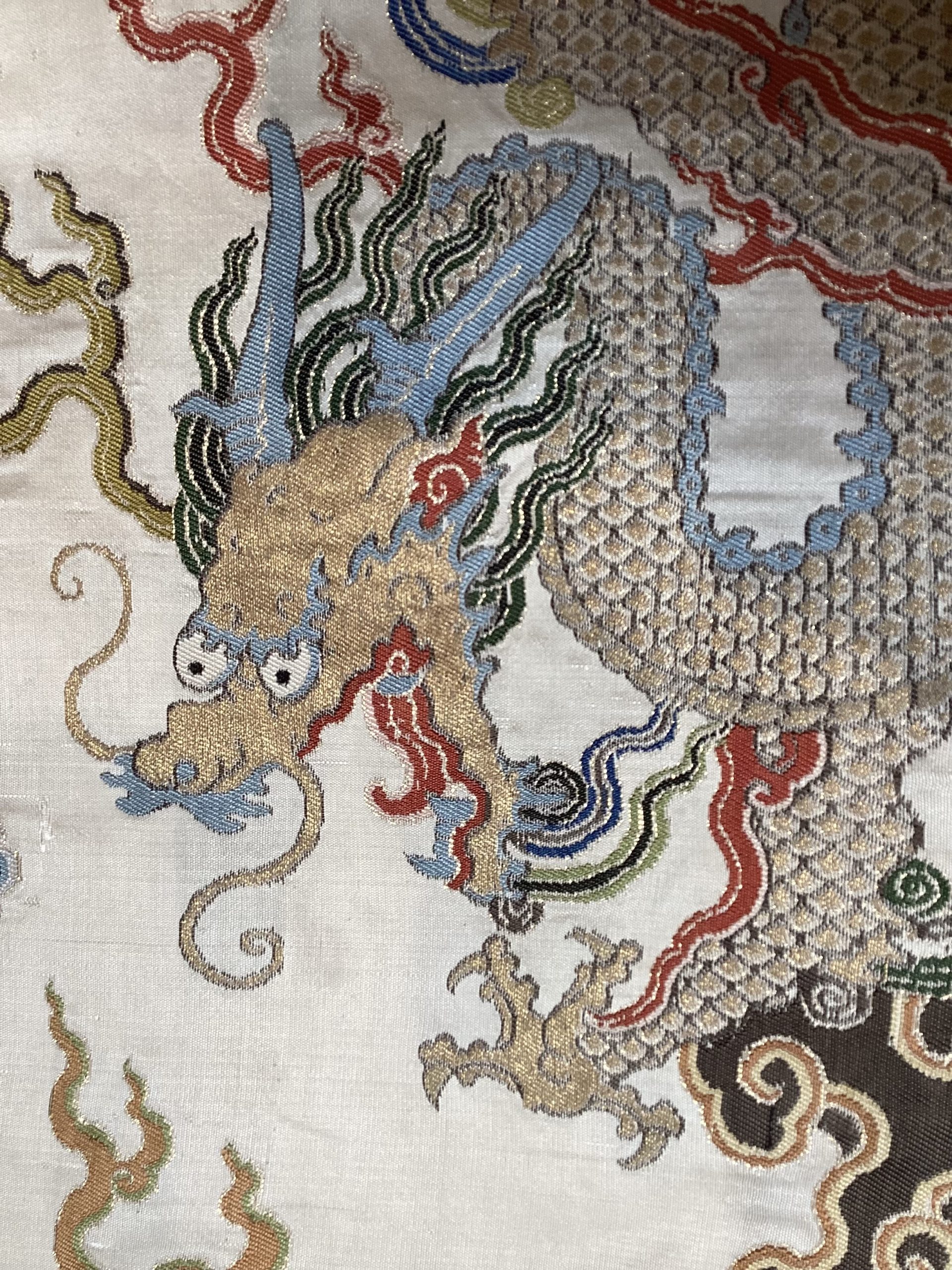 龍は十二支の中で唯一空想上の生き物、その勇姿は、権力の象徴として中国・朝鮮・日本ではよく描かれますね。特に中国の皇帝の身の回りには必ず龍が描かれており、清朝のの朝服をくずした帯は、灯屋2でも人気商品、1本は持ちたい格の高い帯ですね。