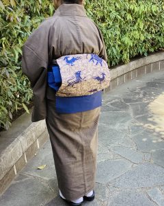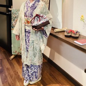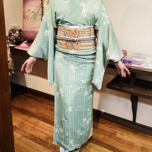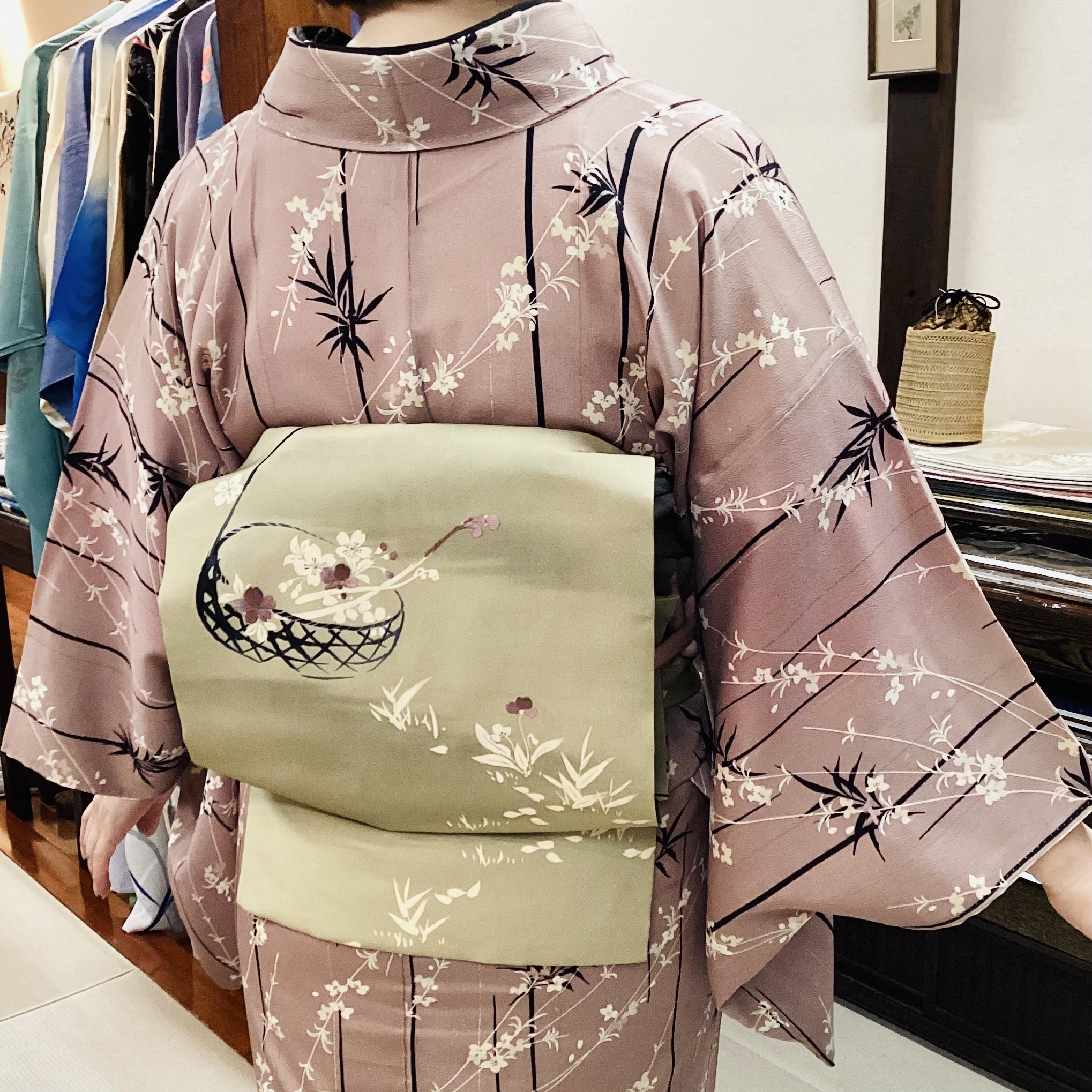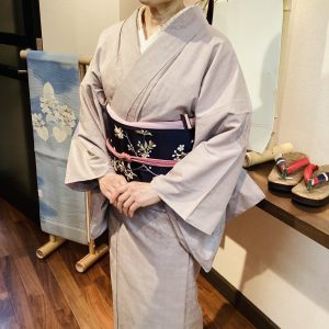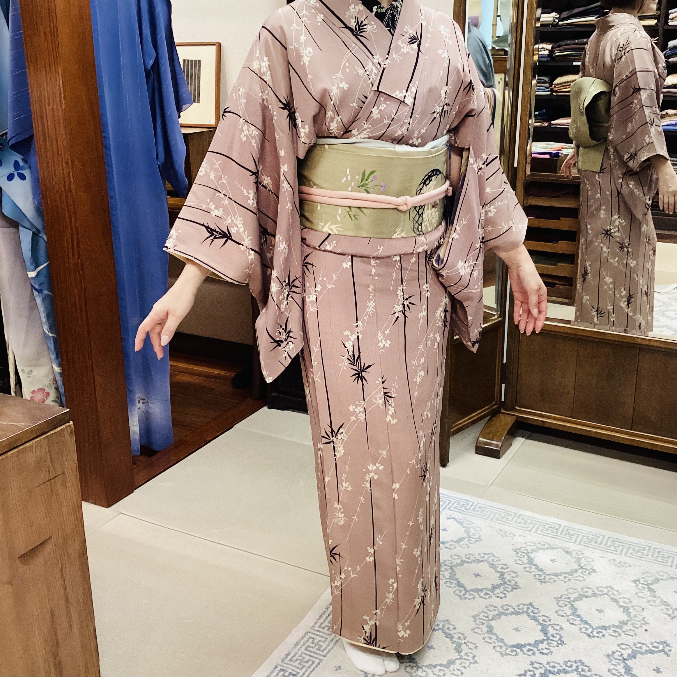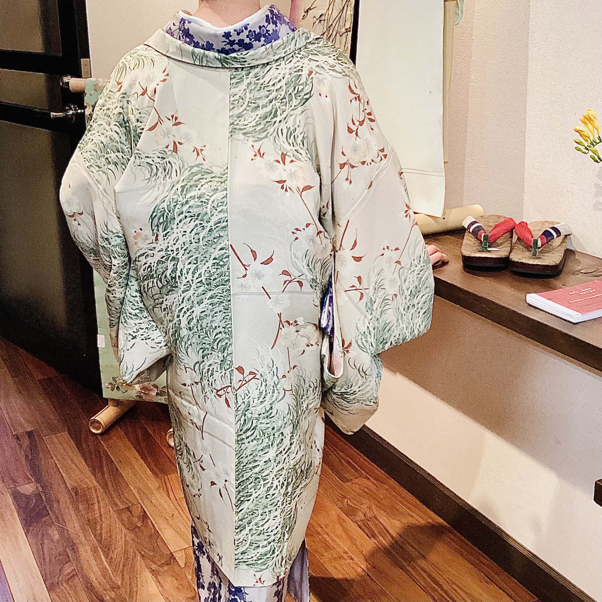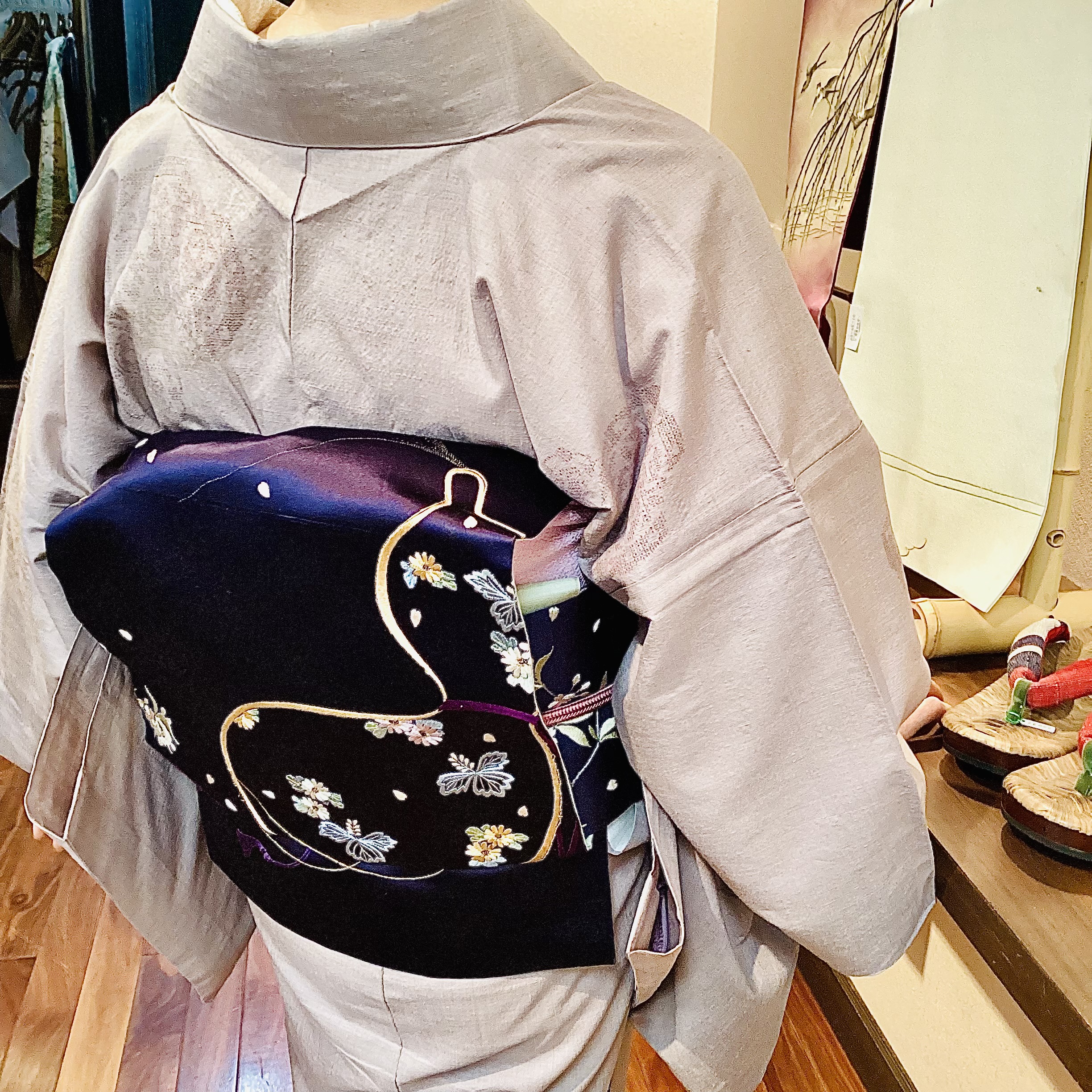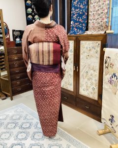 そして最後になりましたが、今回はご参加が叶わなかったものの、出来上がったお着物でご来店いただいたお客様。帯まで全てセットでのトータル・コーディネートです。素敵過ぎます!