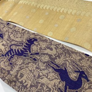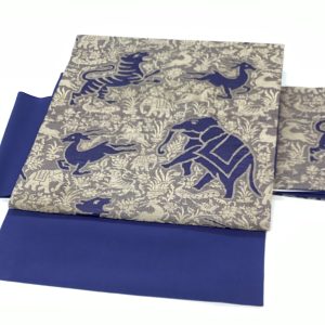 今回買い付けの大変古い貴重な布から作った帯。動物柄を透かし織してあり、青い帯地が透けて見えているのです。こちらはまだお作り可能です!