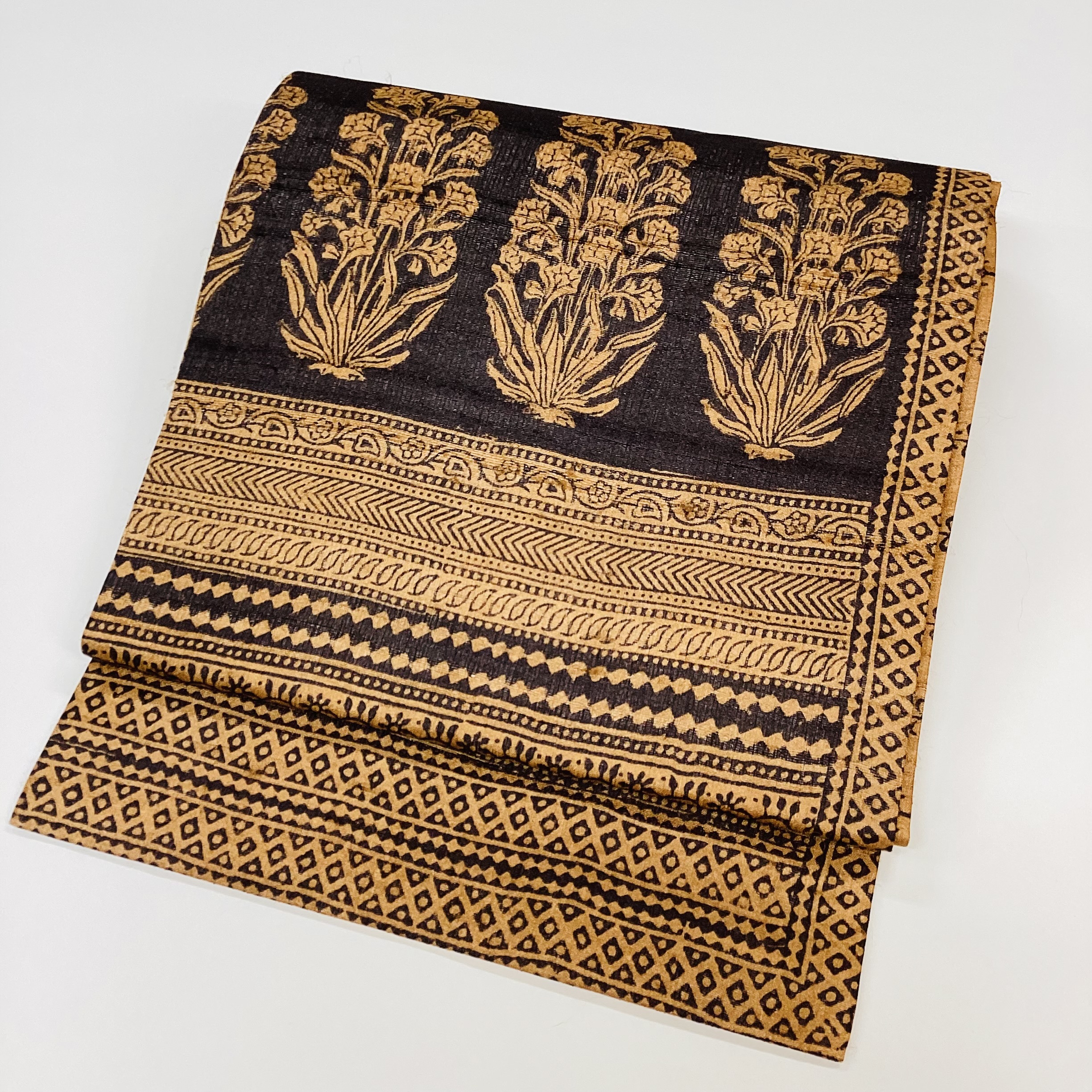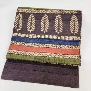 こちらはベナレスシルクの着物と帯でコーティネート。帯はアンティークのお着物にも合わせられ、大変重宝されているとのこと。