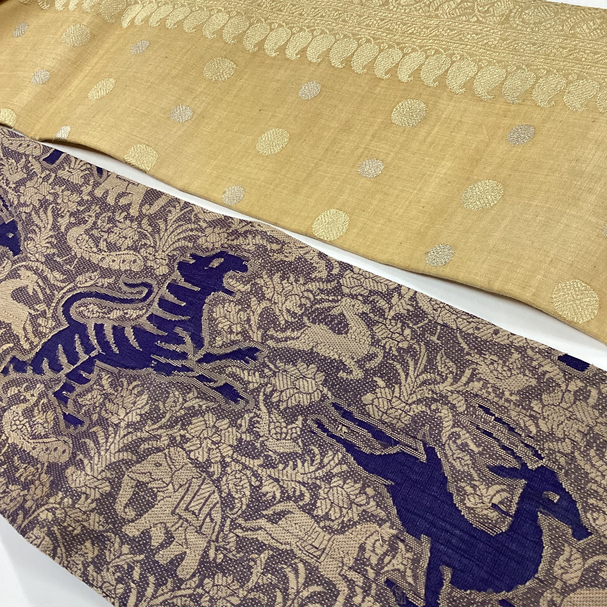 こちらのお客様もお手持ちのお着物に、豪華なベナレスシルクの帯。訪問着や付け下げにも合わせることができる帯ですね。