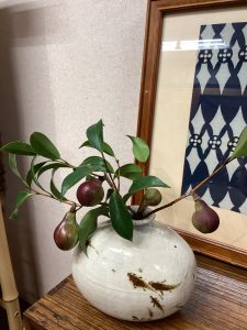 銀座店では素敵な着物や帯の他、季節の花や実が皆様をお待ちしております。