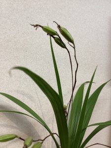 こちらは紫蘭の実。熟して殻が割れると中にある小さな種子がこぼれ出てきます。