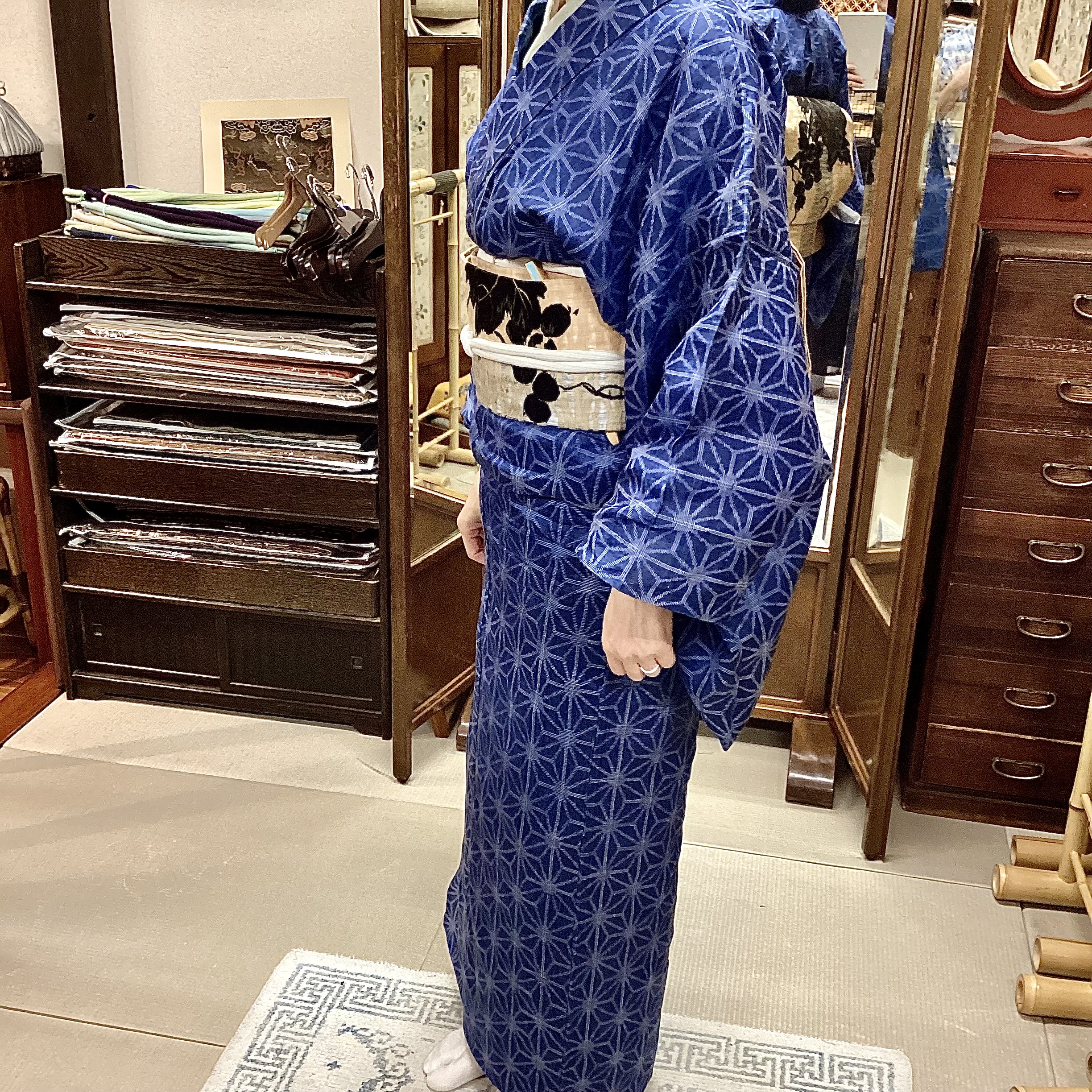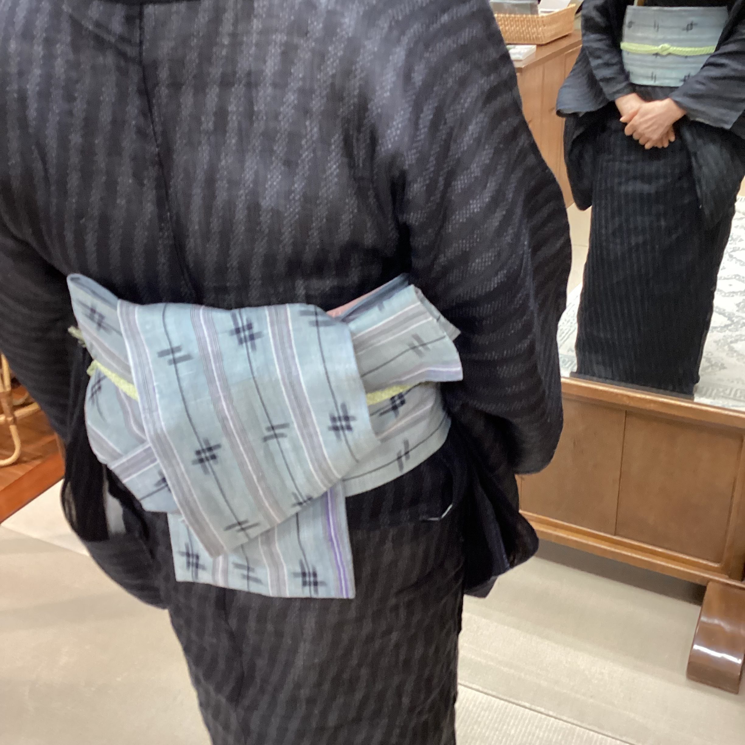 こちらの帯は明治以前の琉装から作った貴重なもの。初めて大人の半幅帯に挑戦されました。