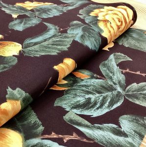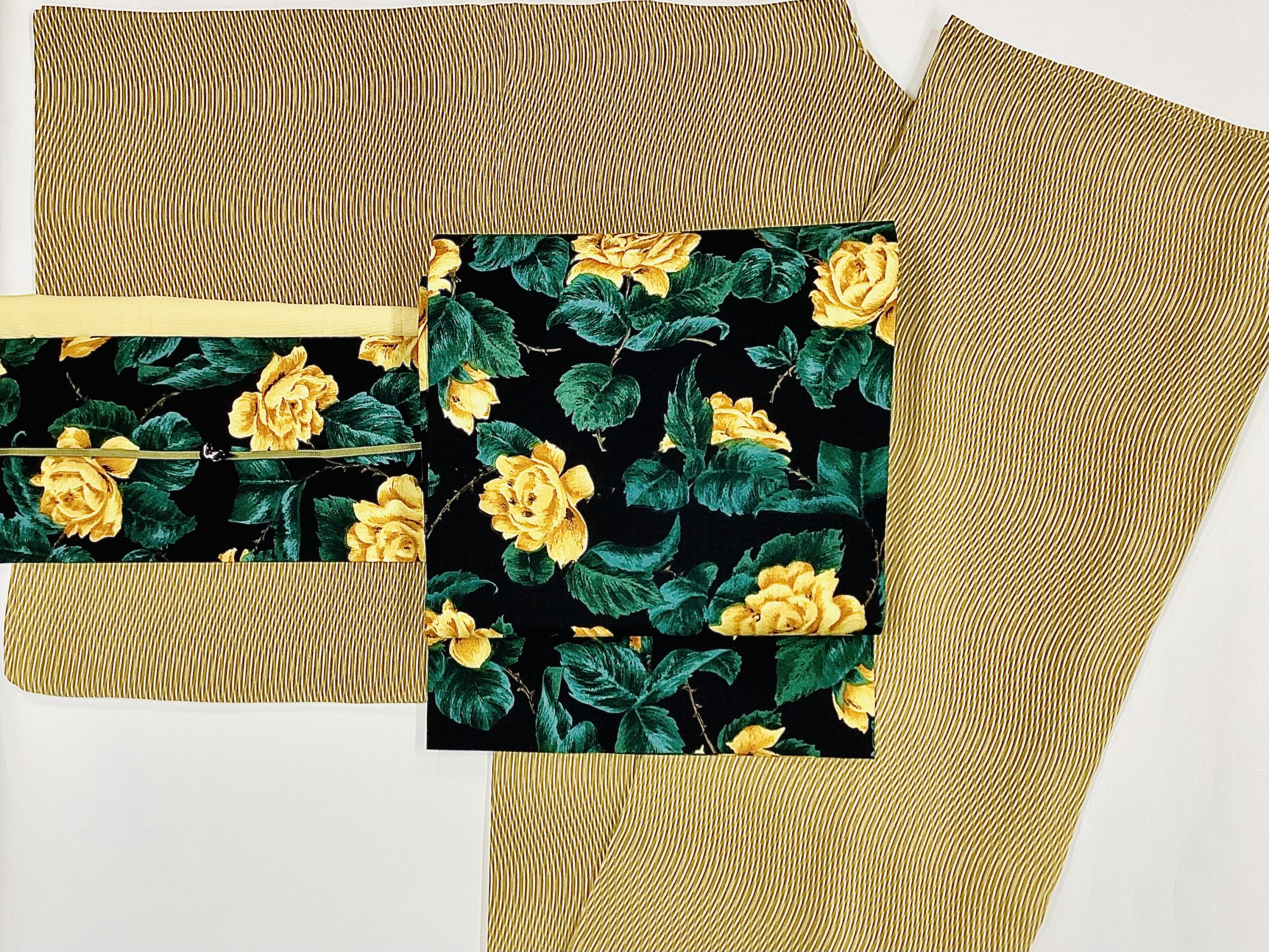 黒地に黄色いバラ文様名古屋帯 33,000円(税込) (帯25-05-19)
