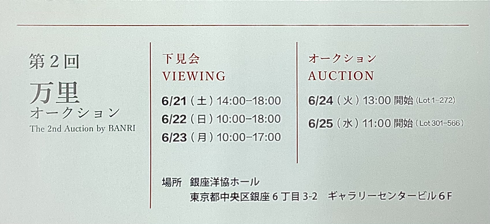 きたる6月24.25日に第2回万里オークションが開催されます。
