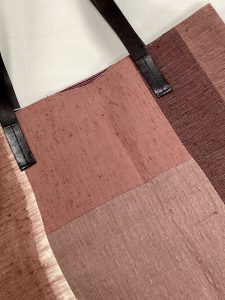 25-10-26紅花紬着物176,000円/ 23-01-22垂れ桜染め名古屋帯55,000円/浦野理一の継ぎバッグ28,000円