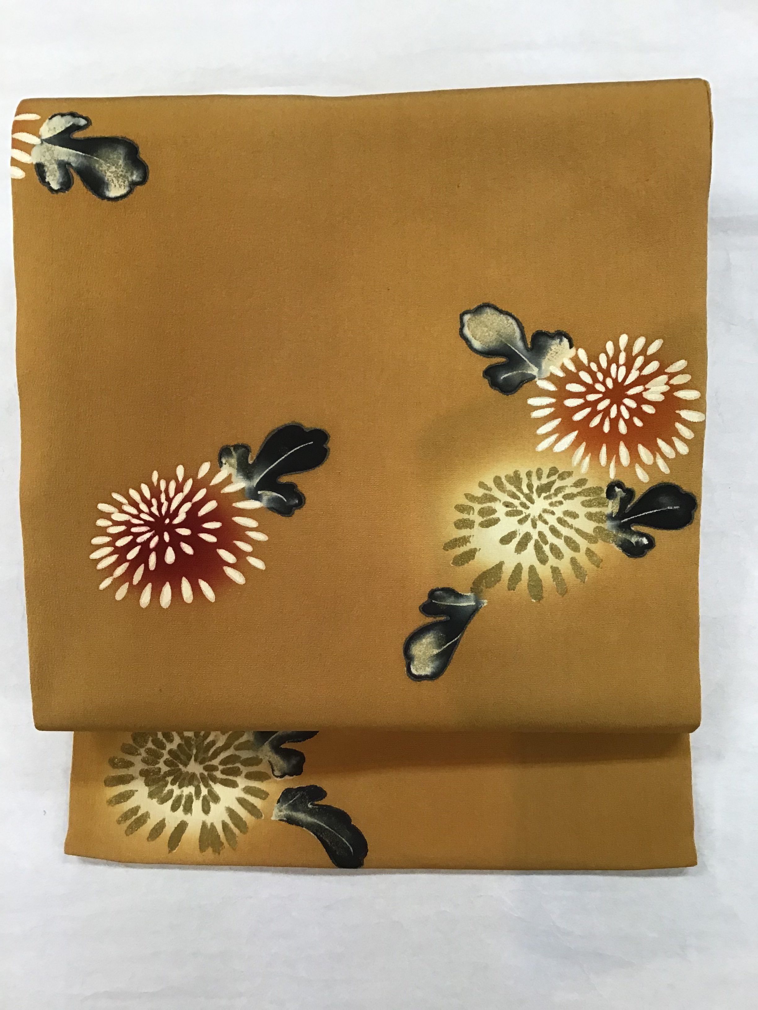 菊の手書き友禅帯
