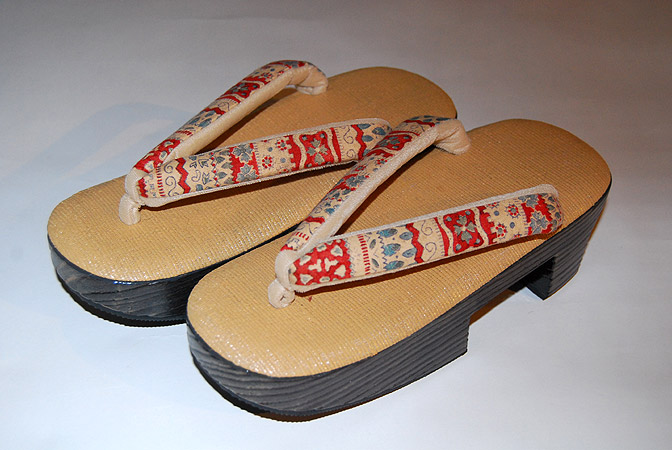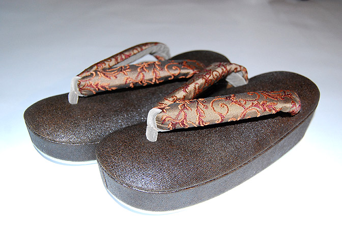 下駄 葛布漆塗布張り ヒールタイプ M寸