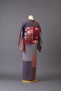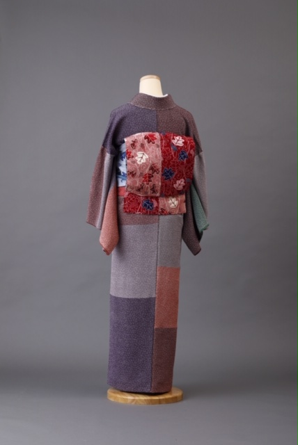 その2 うらの着物 浦野さんの着物に、浦野さんの裂を継いで帯にしたものをコーディングしています。