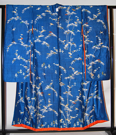 納戸色に白上げの技法で、江戸後期の武家の衣装です。