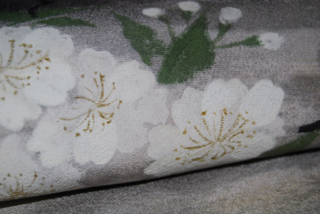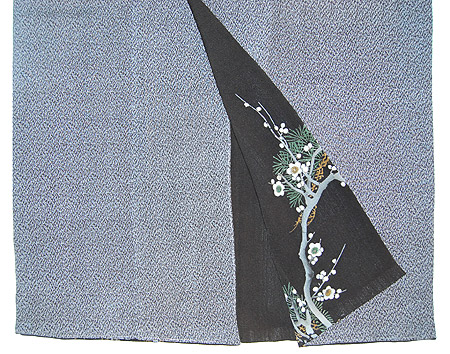 八掛はも同じ時代の縮緬地で、梅に末の裾模様を利用しました。