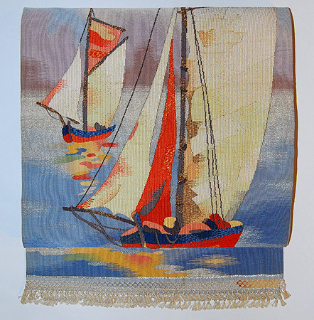 帆船の図綴れ帯