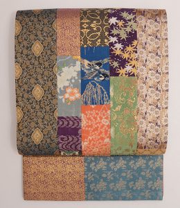 それと共に、金蘭や江戸縮緬など、古布100継ぎの帯も作ってみました。