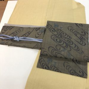 黄味かかったベージュの小千谷縮(Lサイズ)に小千谷名古屋帯