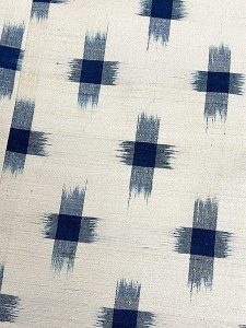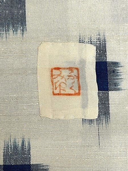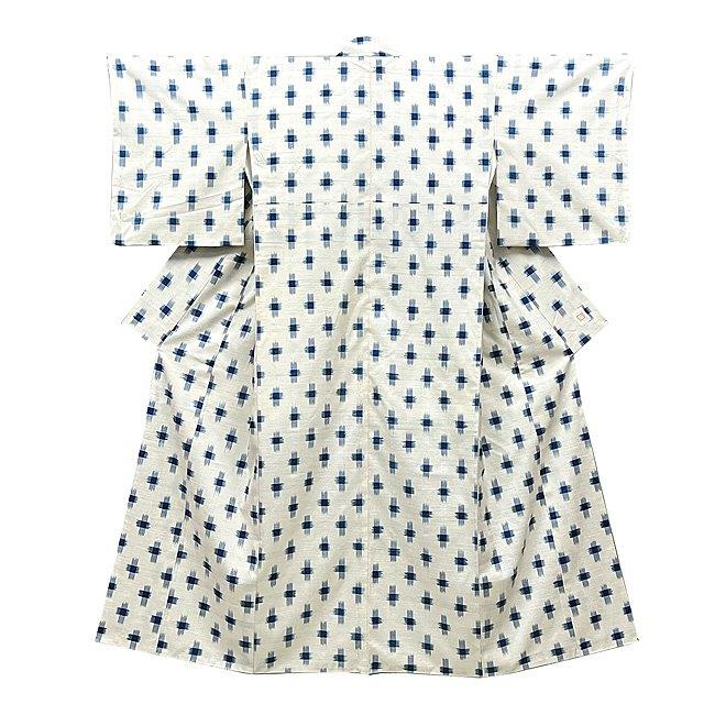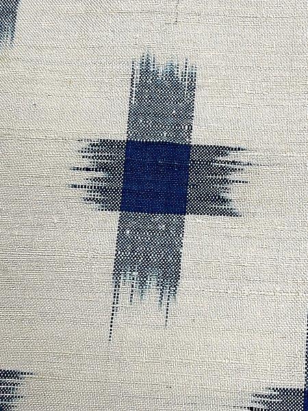 なんと爽やかな意匠でしょう。十字絣はよく目にする文様ですが、これほど明快でやさしさに溢れた着物は少ないでしょう。手触りもやさしくそして藍独特の華やかさに満ちた逸品です。