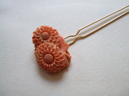 菊かんざし 金・珊瑚 昭和初期 36,750円