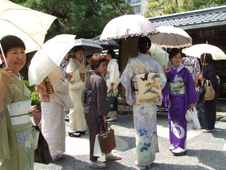 この日も美しい染めのアンティーク錦紗の単衣をお召しになる方あり、ちょっと先取り軽い上布を纏う方あり、さらっとした単衣の紬をすっきり着こなす方ありと惚れ惚れ、皆様を拝見いたしました。