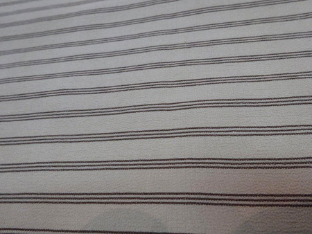 練色に鳶色の1cm間隔の3本縞が、すっきりと優しい印象の素敵な袷着物。