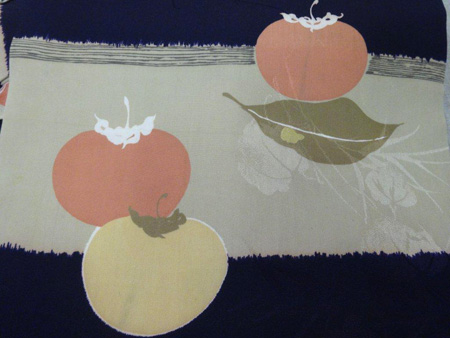 横段に柿の染名古屋帯 (帯14-9-32) 54000円