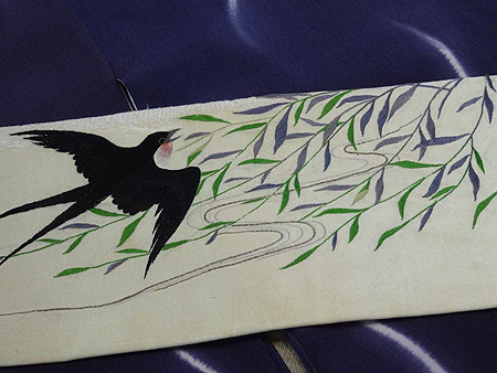 柳に燕刺繍名古屋帯柳と燕は「梅に鶯」「竹に雀」と同様にぴったりの組み合わせの意匠です。
