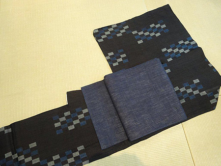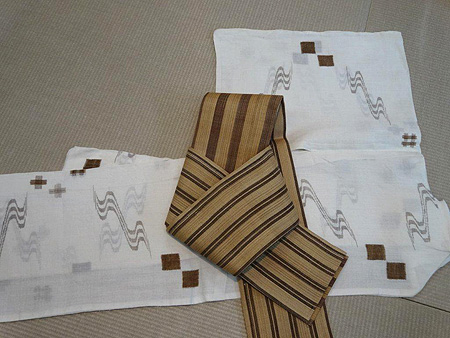 芭蕉布双子縞の半幅帯 (帯17-6-25)