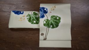 爽やかな新緑の香りを楽しませてくれるツワブキの名古屋帯:30,000円+税