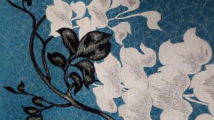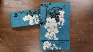 華やかな花浅葱にモダンな藤の刺繍名古屋帯:ご売約済