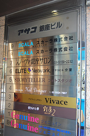 銀座中央通り二丁目メルサさんのお向い側で、トラヤ帽子店の右隣のアサコ銀座ビルの2階です。
