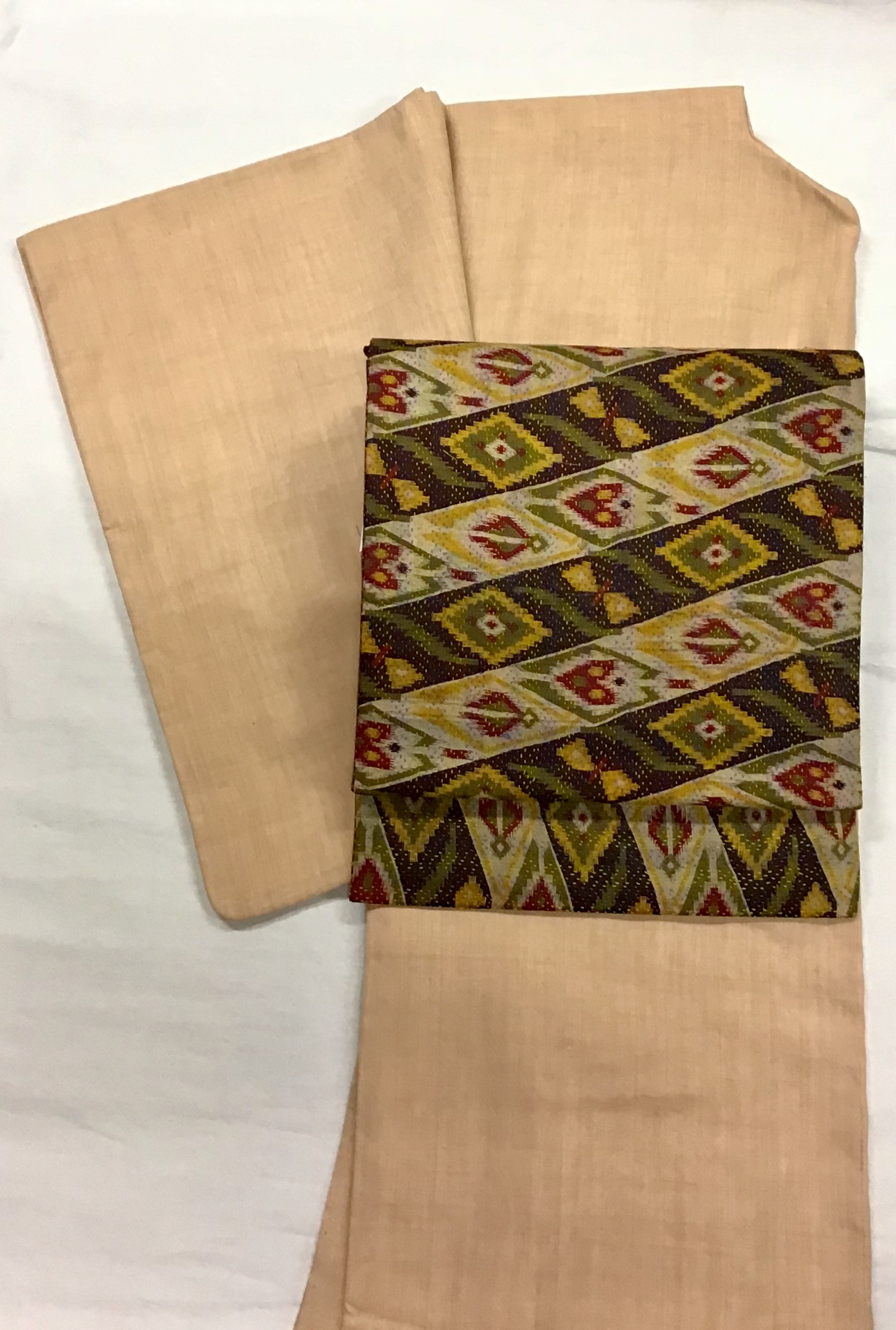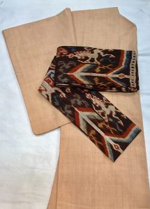 インドネシアカリマンタン地方で織られた、多色使い絣布を使ったイカット半幅帯