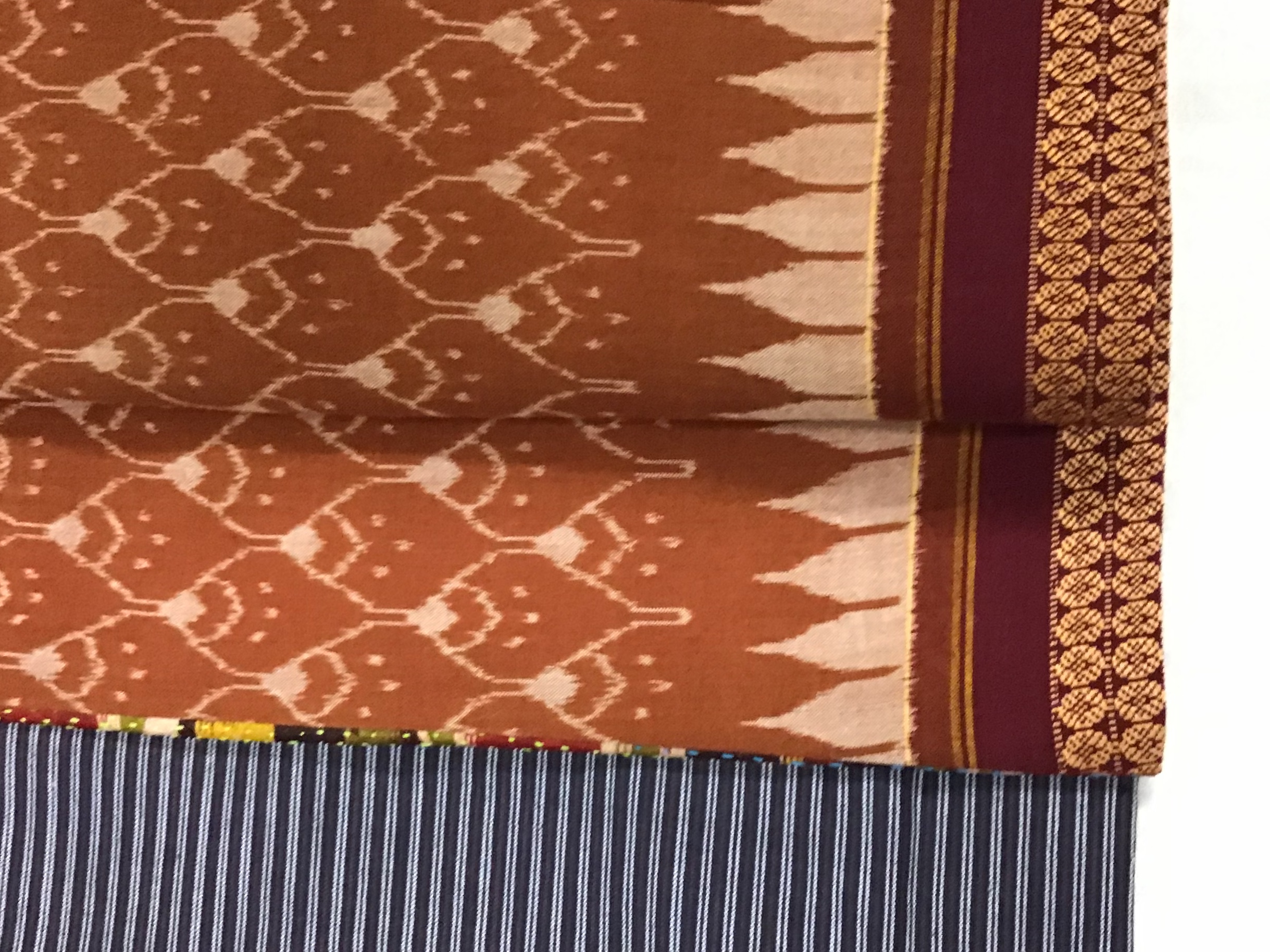 裏側は深いオレンジ色のサリーが使われ、両面で楽しめます。