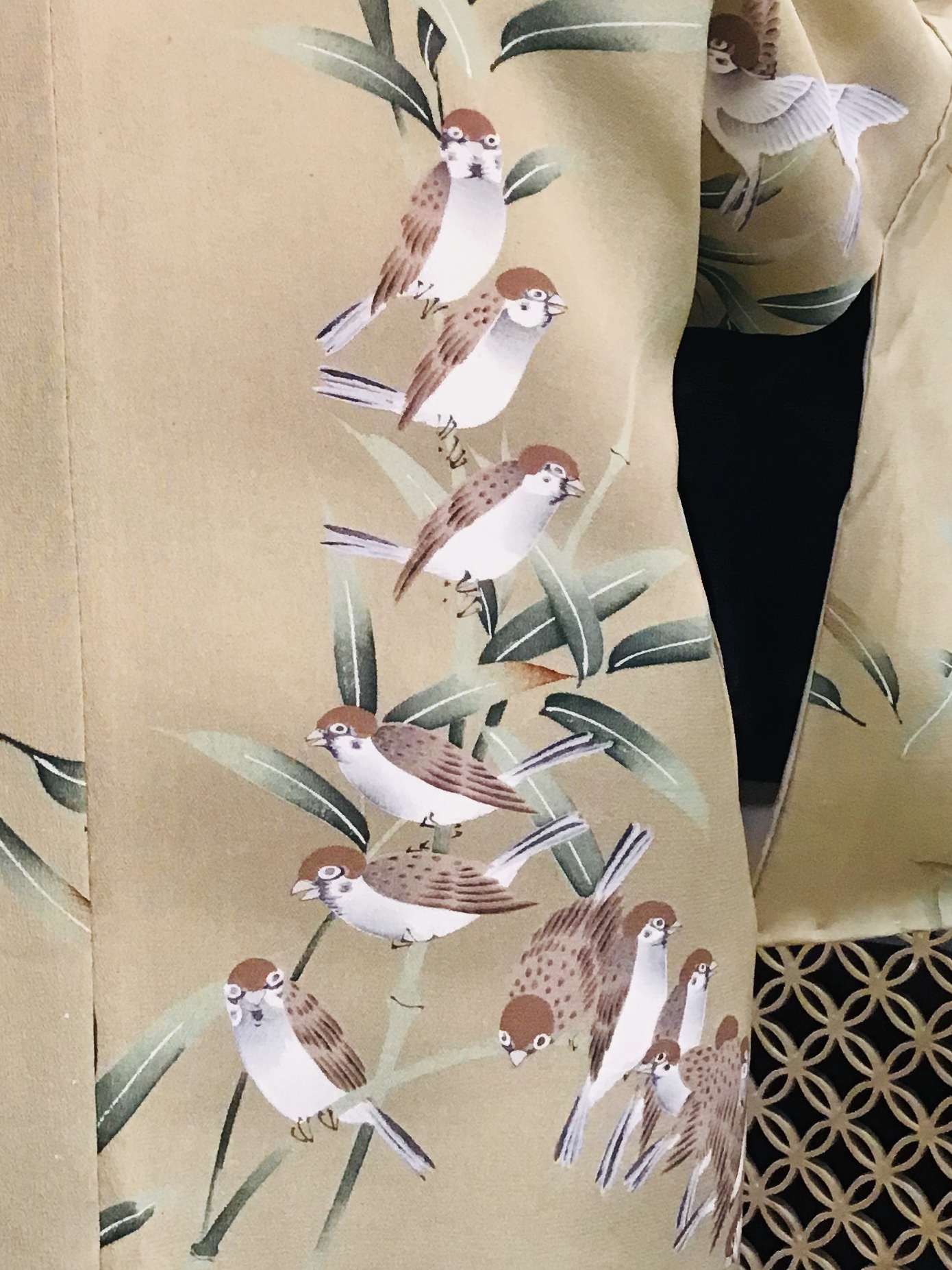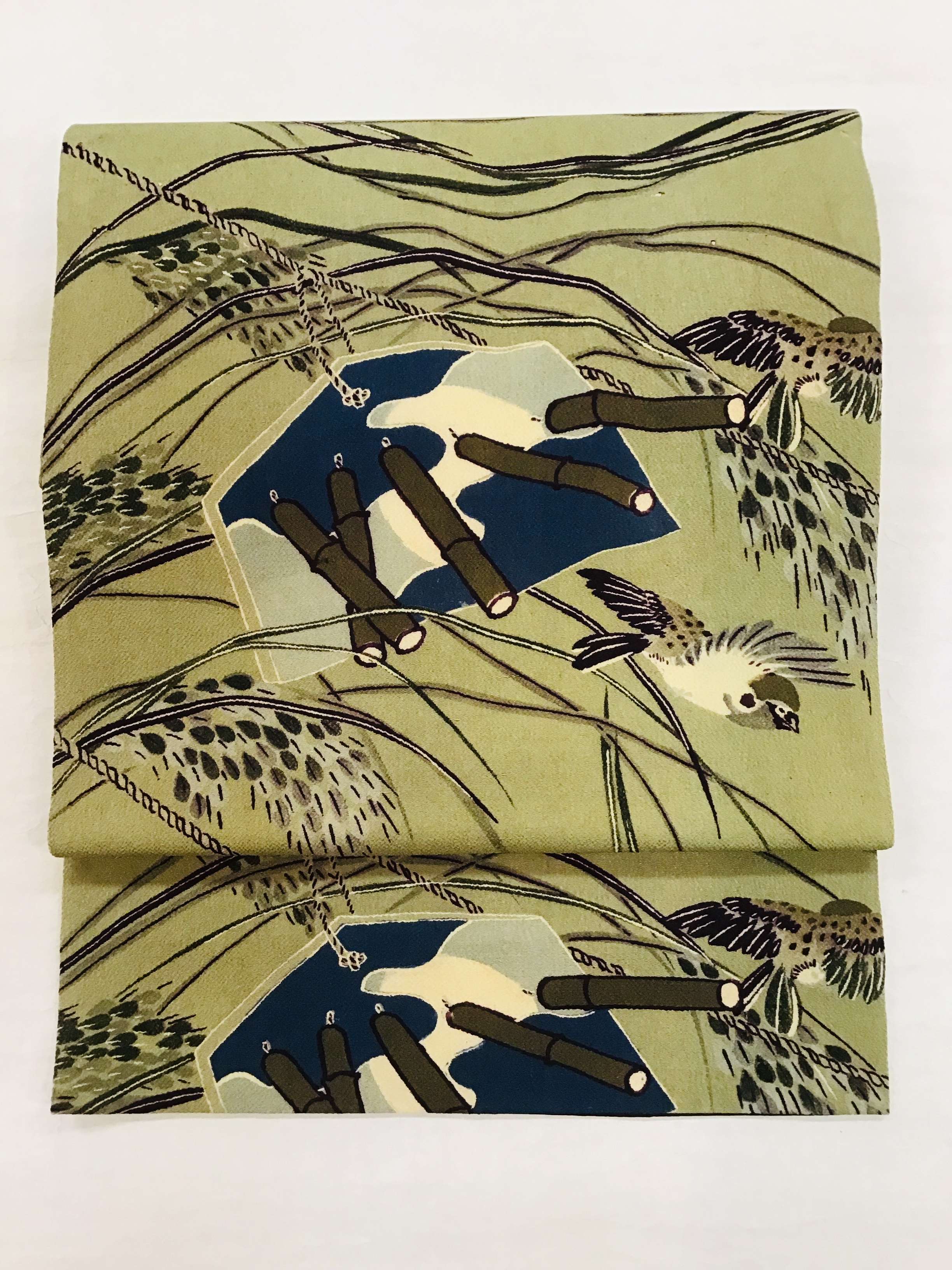 縮緬雀と鳴子の染め名古屋帯 70,000+税