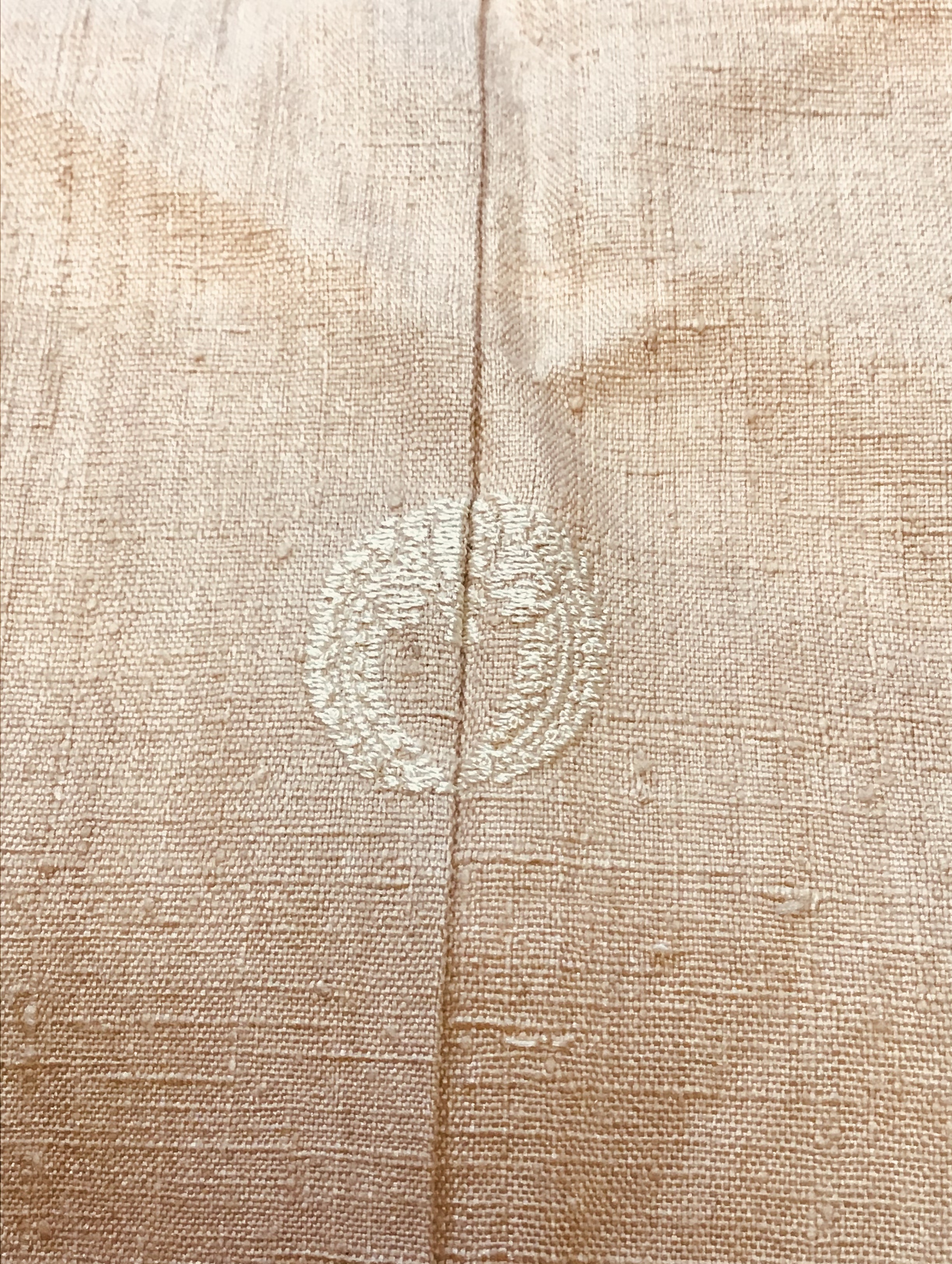 あたたかな本場結城紬、ピンクベージュの色味の優しさ。