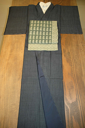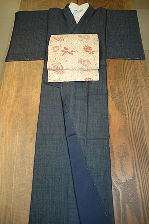 藍色や茶色に細かい格子や縞のオーソドックスな柄ゆきは、帯選びの楽しさを味あわせてくれます。