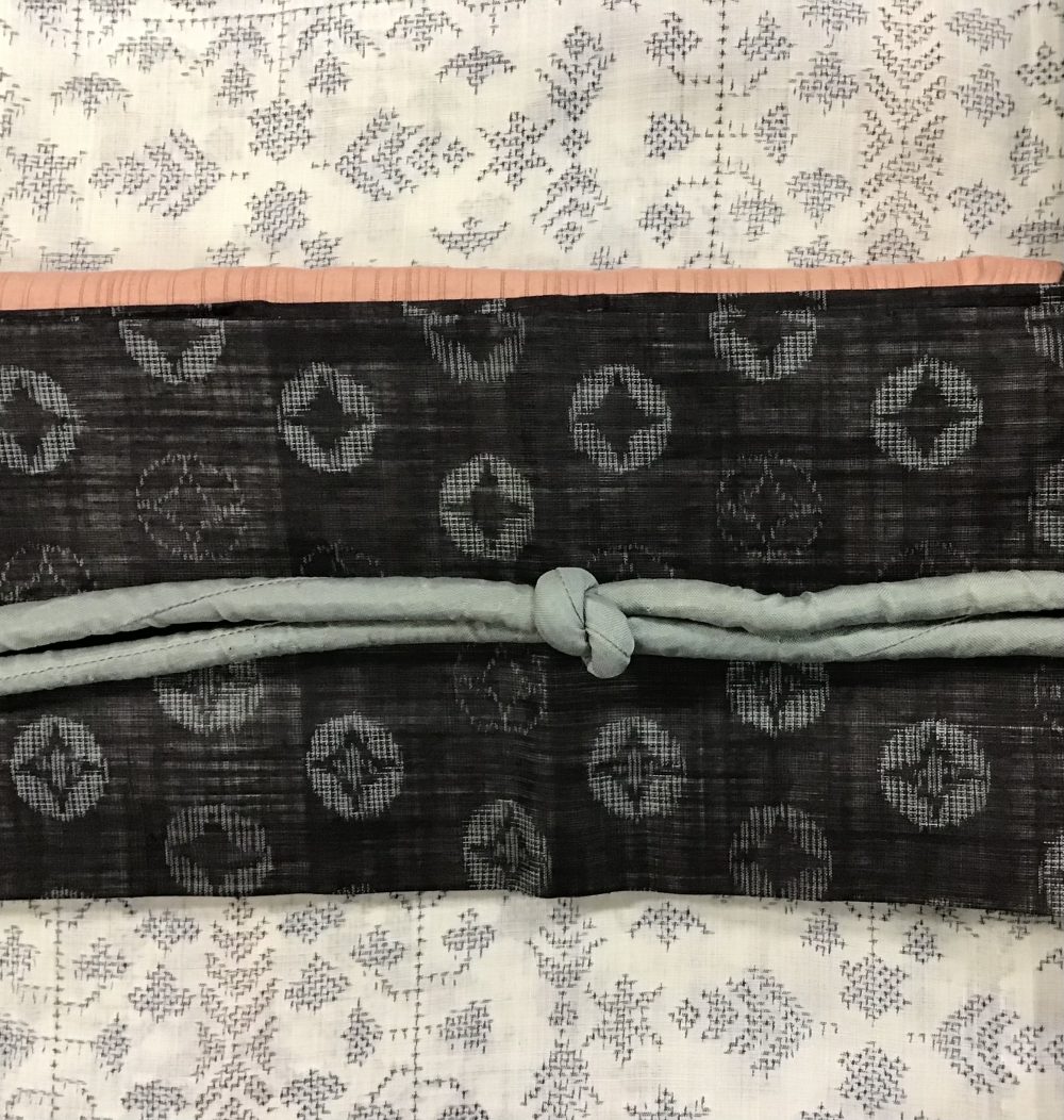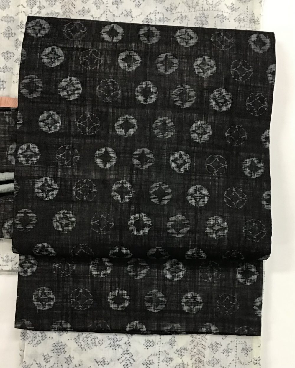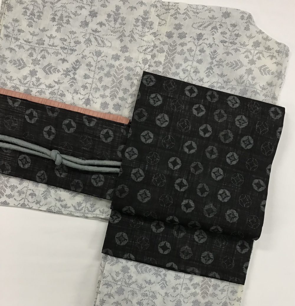 越後上布(ラミー)に越後丸紋絣の名古屋帯