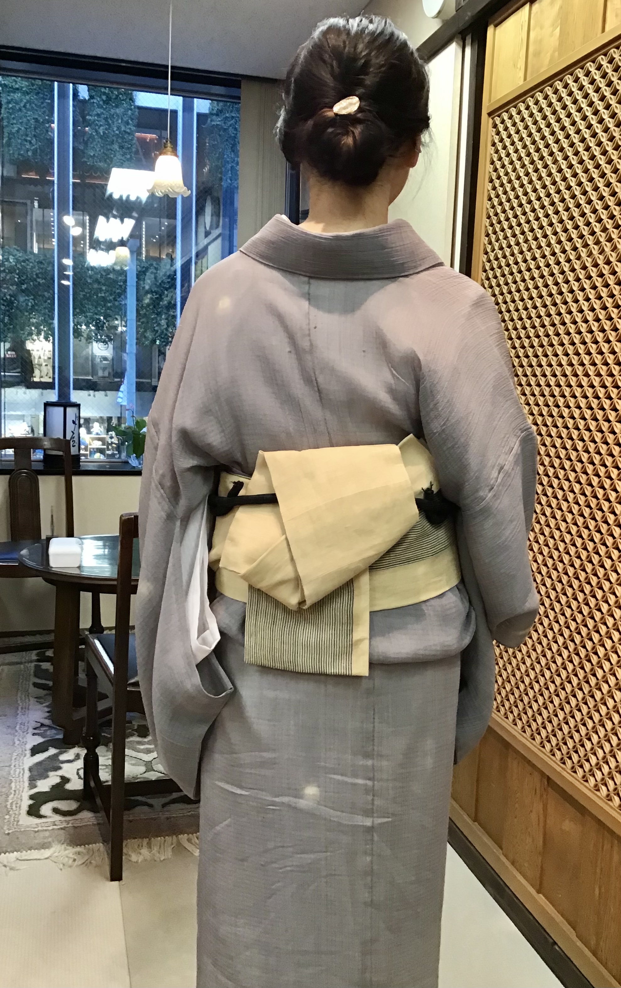 お客様の装い✨半幅帯はやめられません 灯屋2の大人半幅帯。 名古屋帯まで、気張らずにお出かけするのにも、自然体でお洒落をたのしめる帯なんです。 もし、半幅帯で迷っていらしたら、銀座店へGo !です。 前で結んで、クルッ!と粋な背中が、出来上がります。 宮古上布に対馬麻の半幅帯をお召しになったお客様の装い 宮古上布のひんやりした感触が、伝わってくるような素敵な着姿でした✨ 対馬木綿の半幅帯を小千谷に合わせたお客様の装い 動きも楽になるので着物でいることを忘れてしまう事もあるそうです。 シャンとした後ろ姿に心持ちが表れて、お綺麗です。