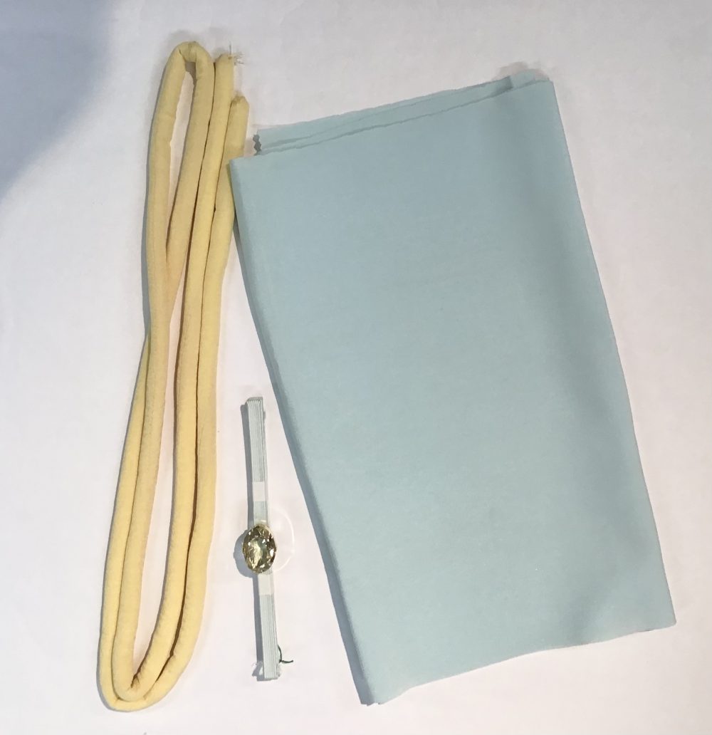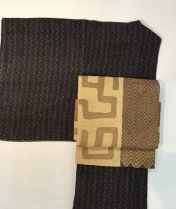 斜め格子のバティック帯を合わせて、小物は丸ぐけと帯留の2種類にしてみました。