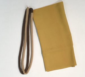 からし色の帯揚げと、ベージュと茶色のコンビの丸ぐけを合わせました。