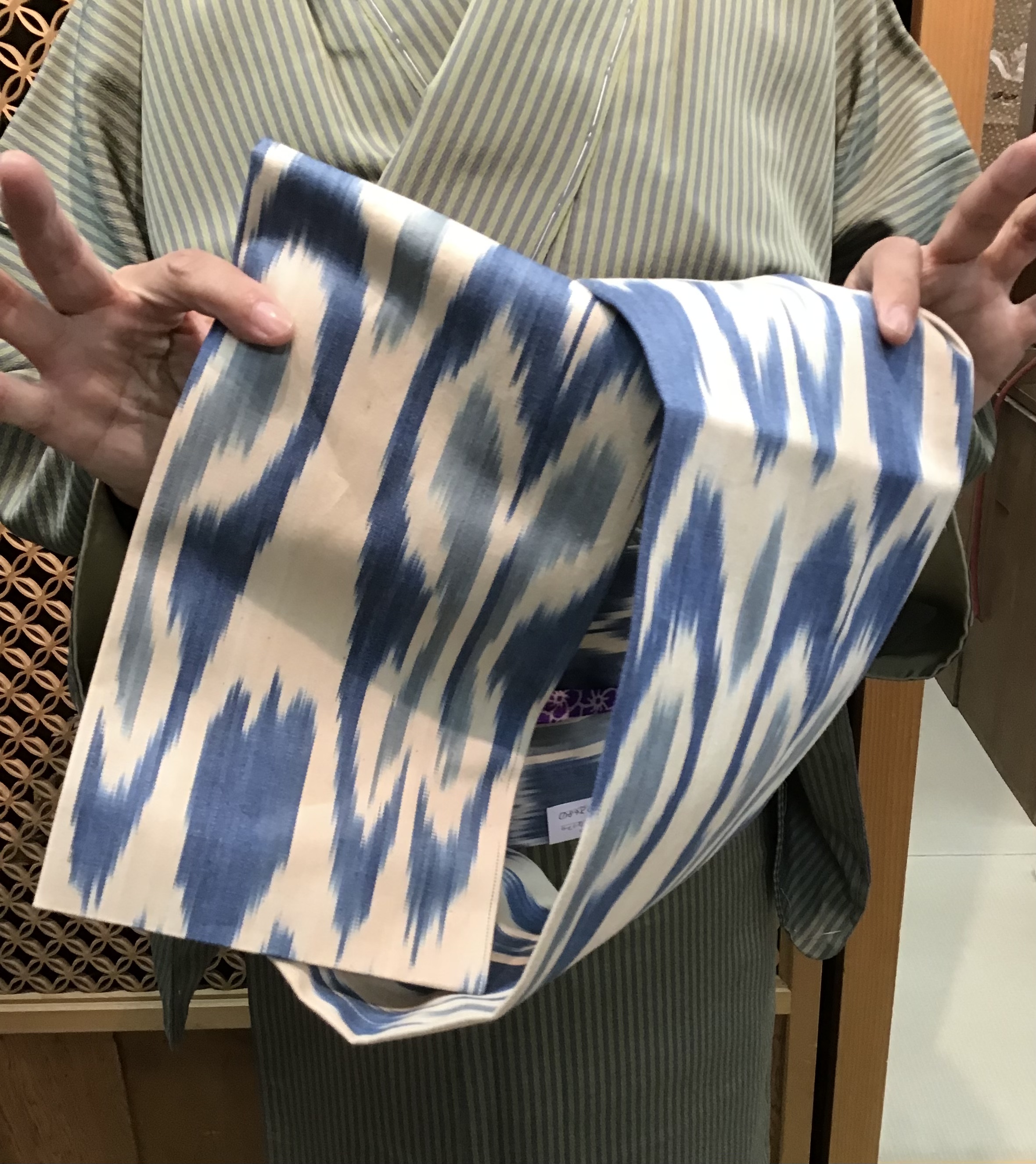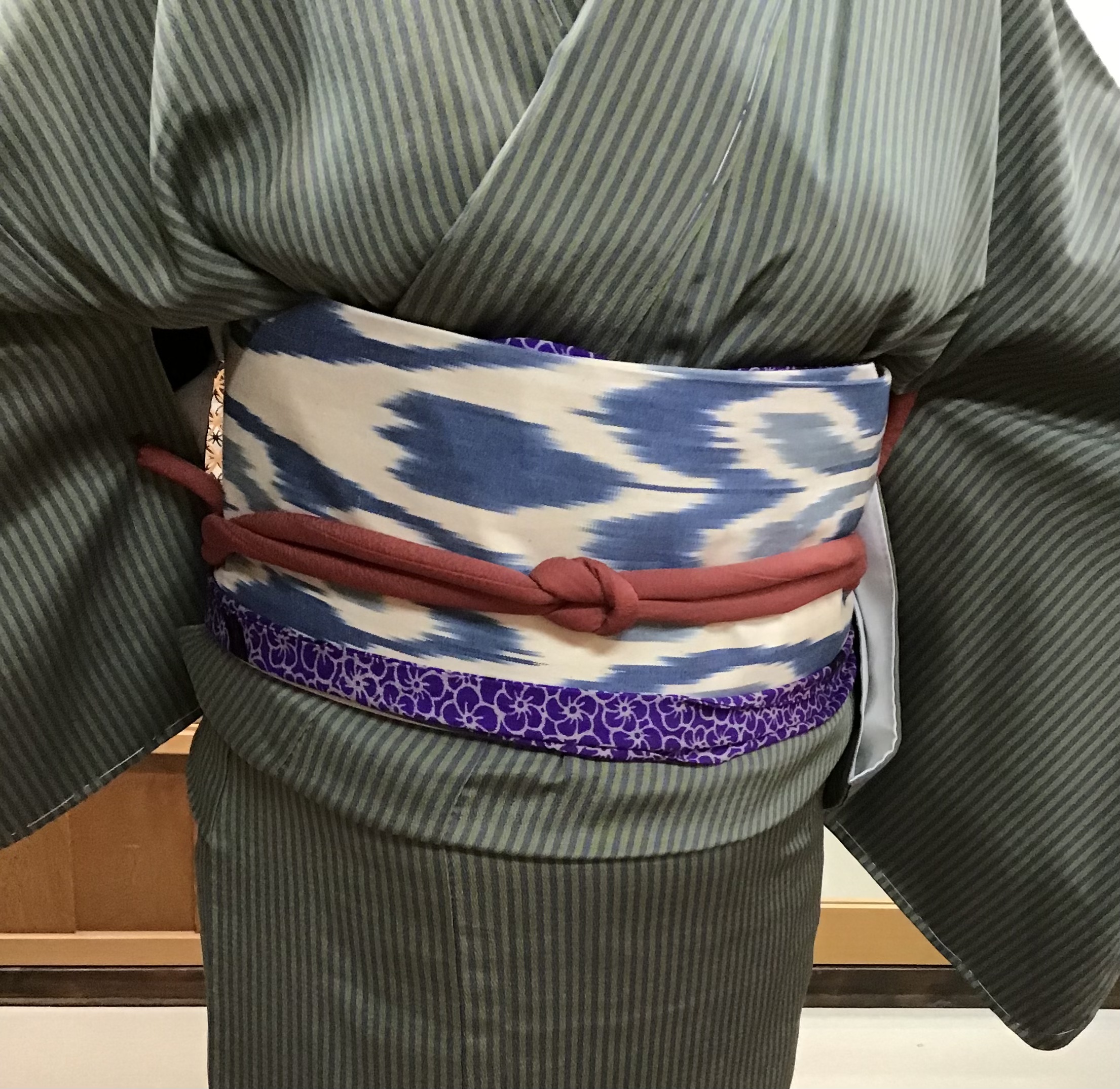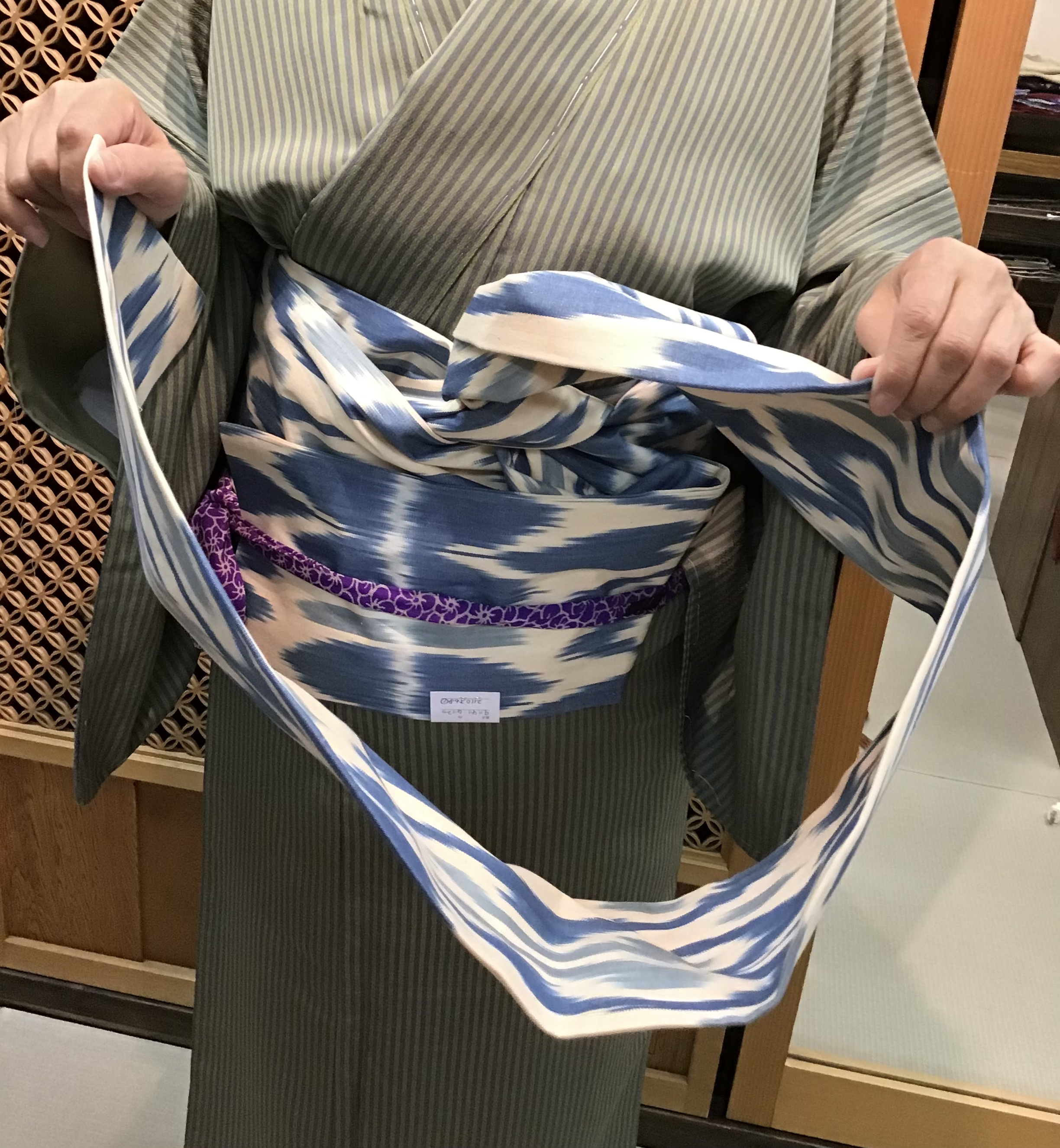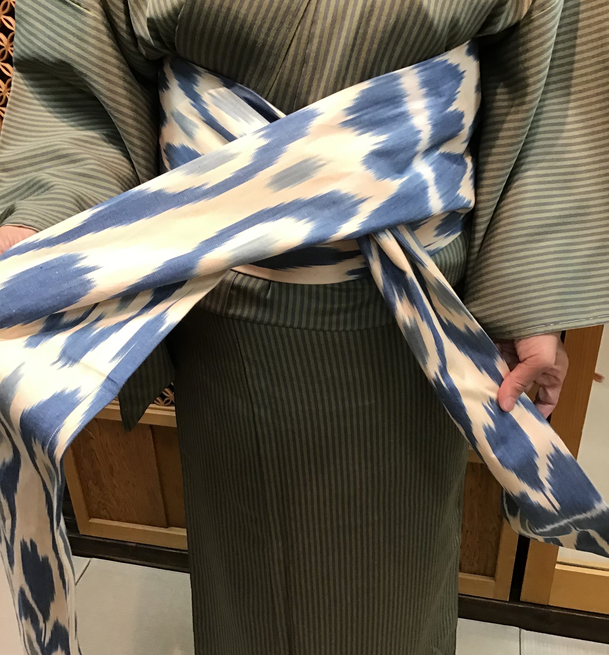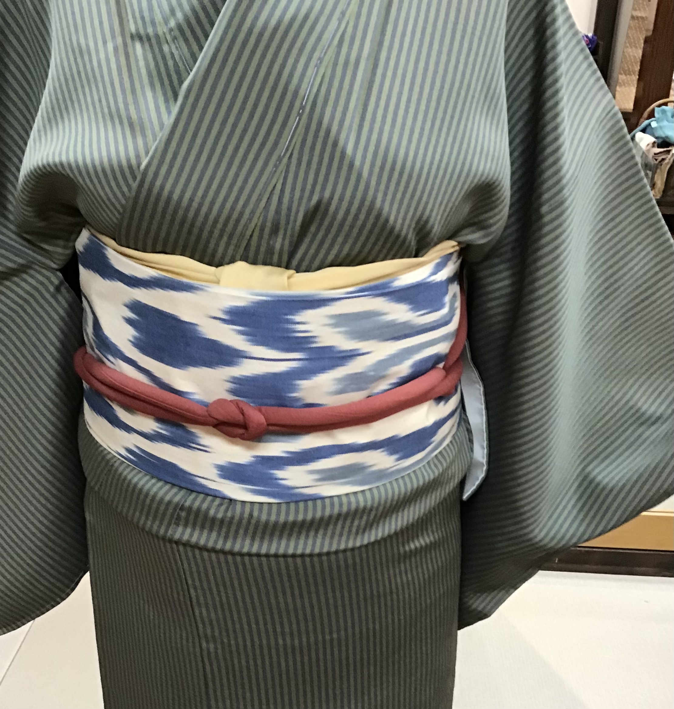 アドラスの半幅帯の、他の色で結んだ感じです。