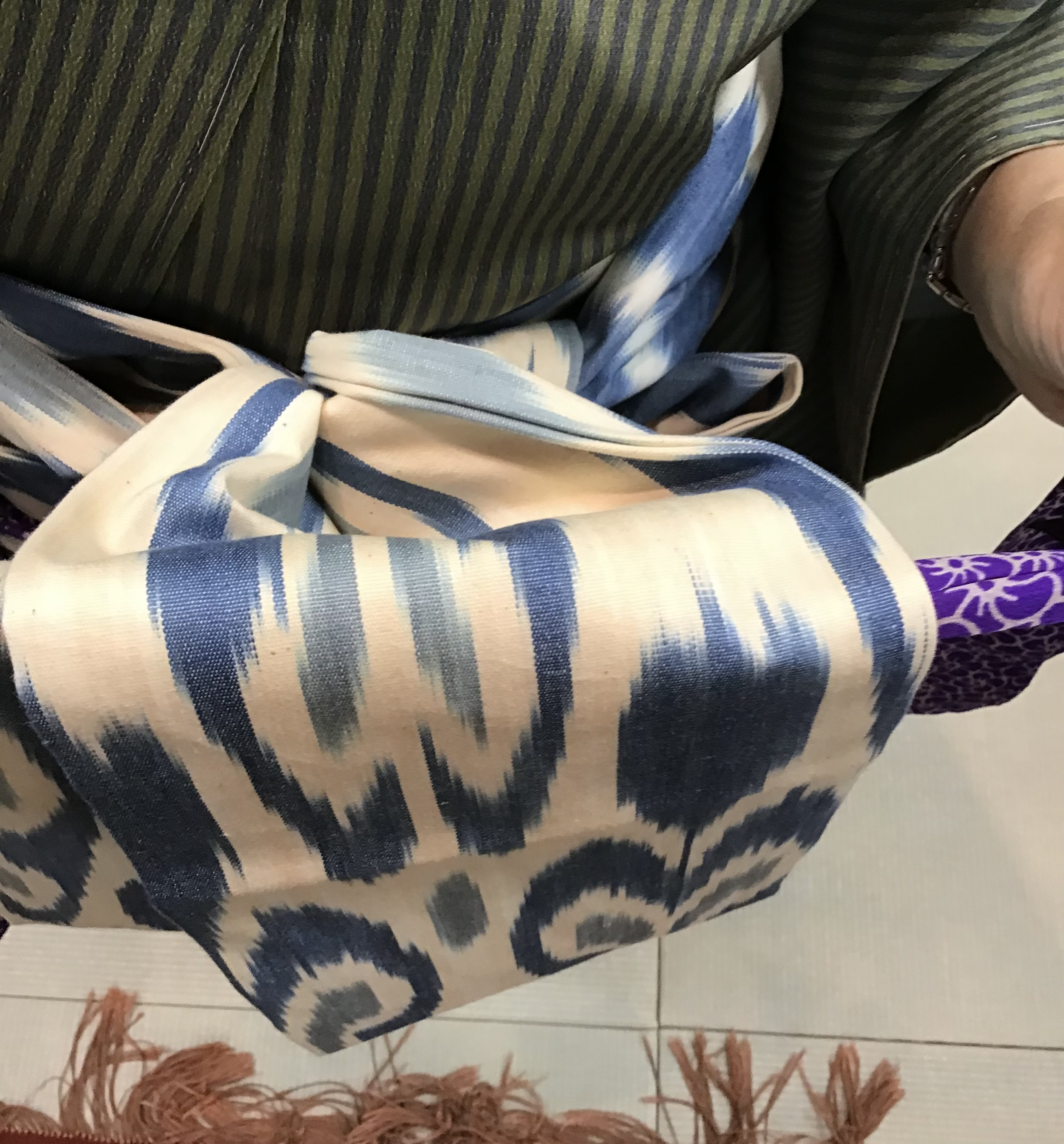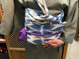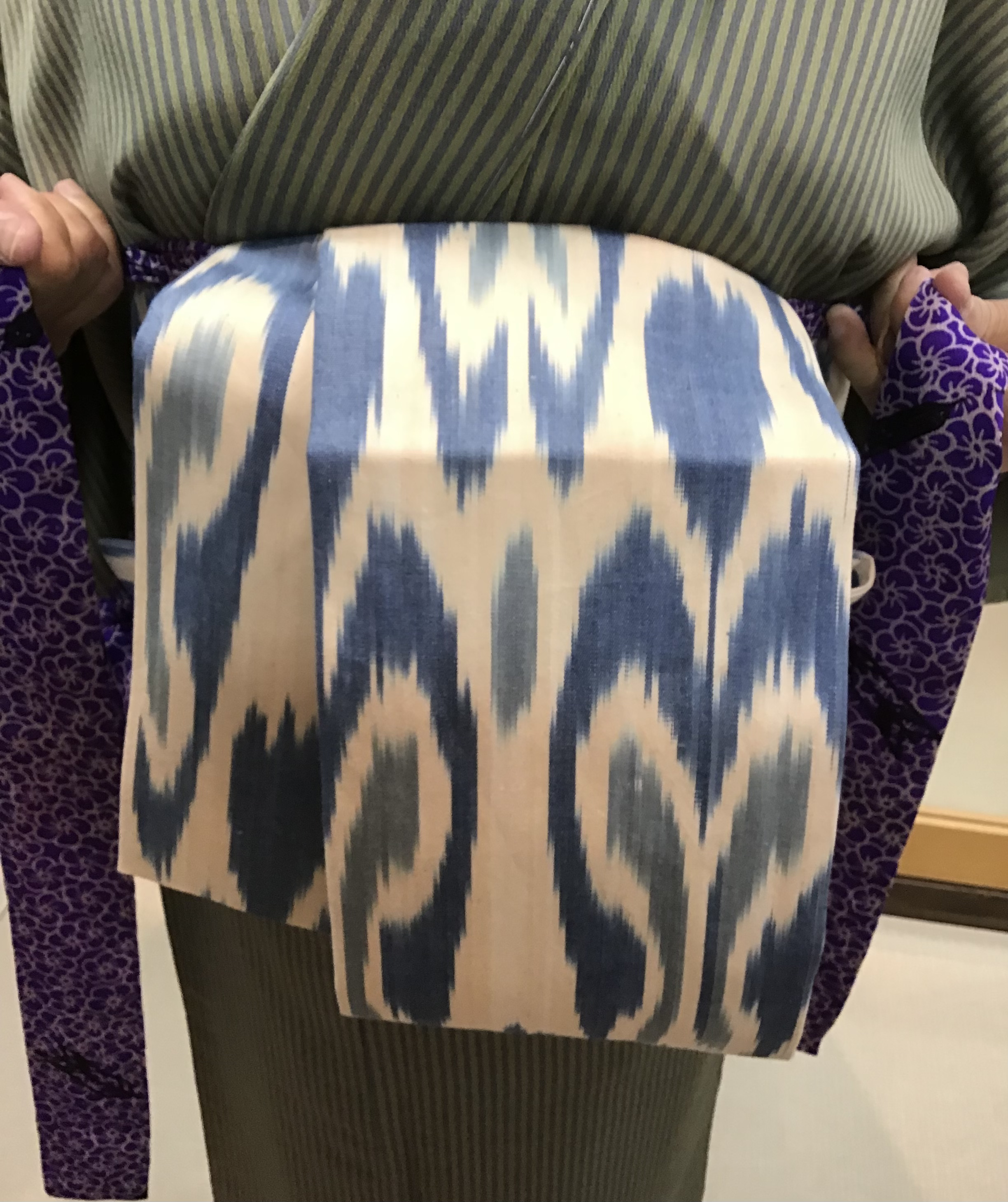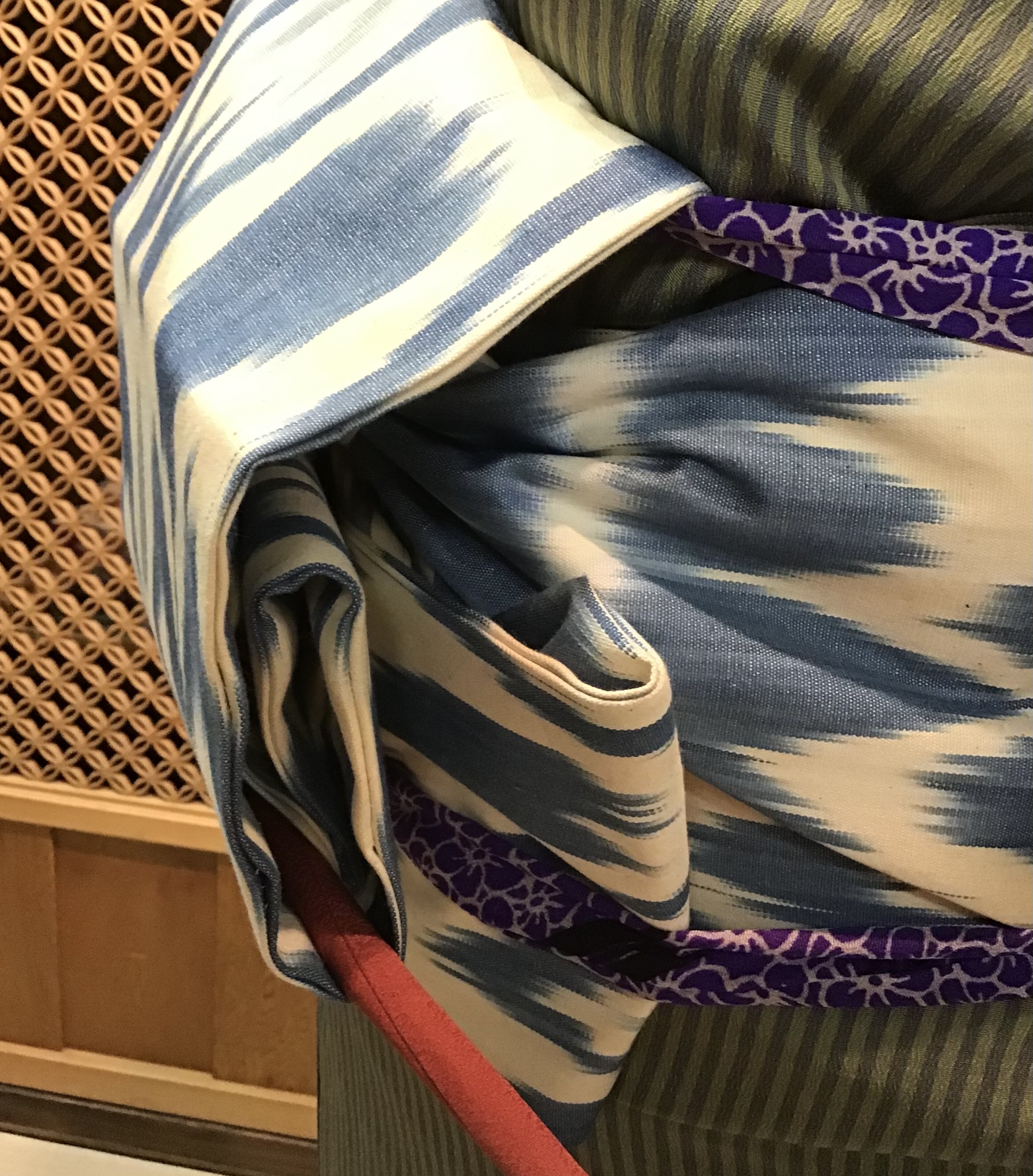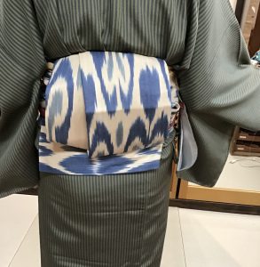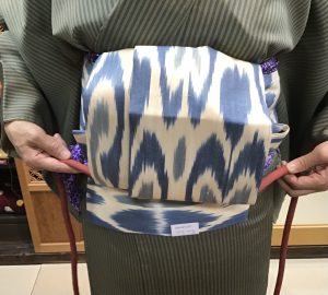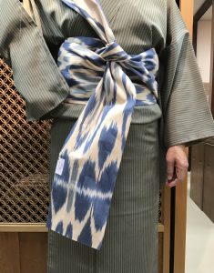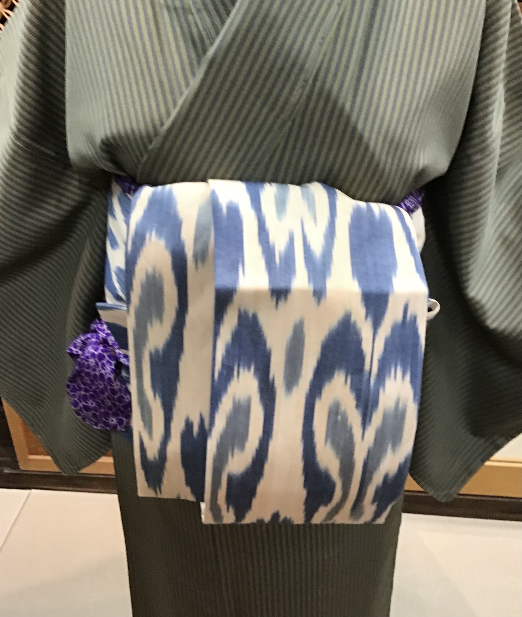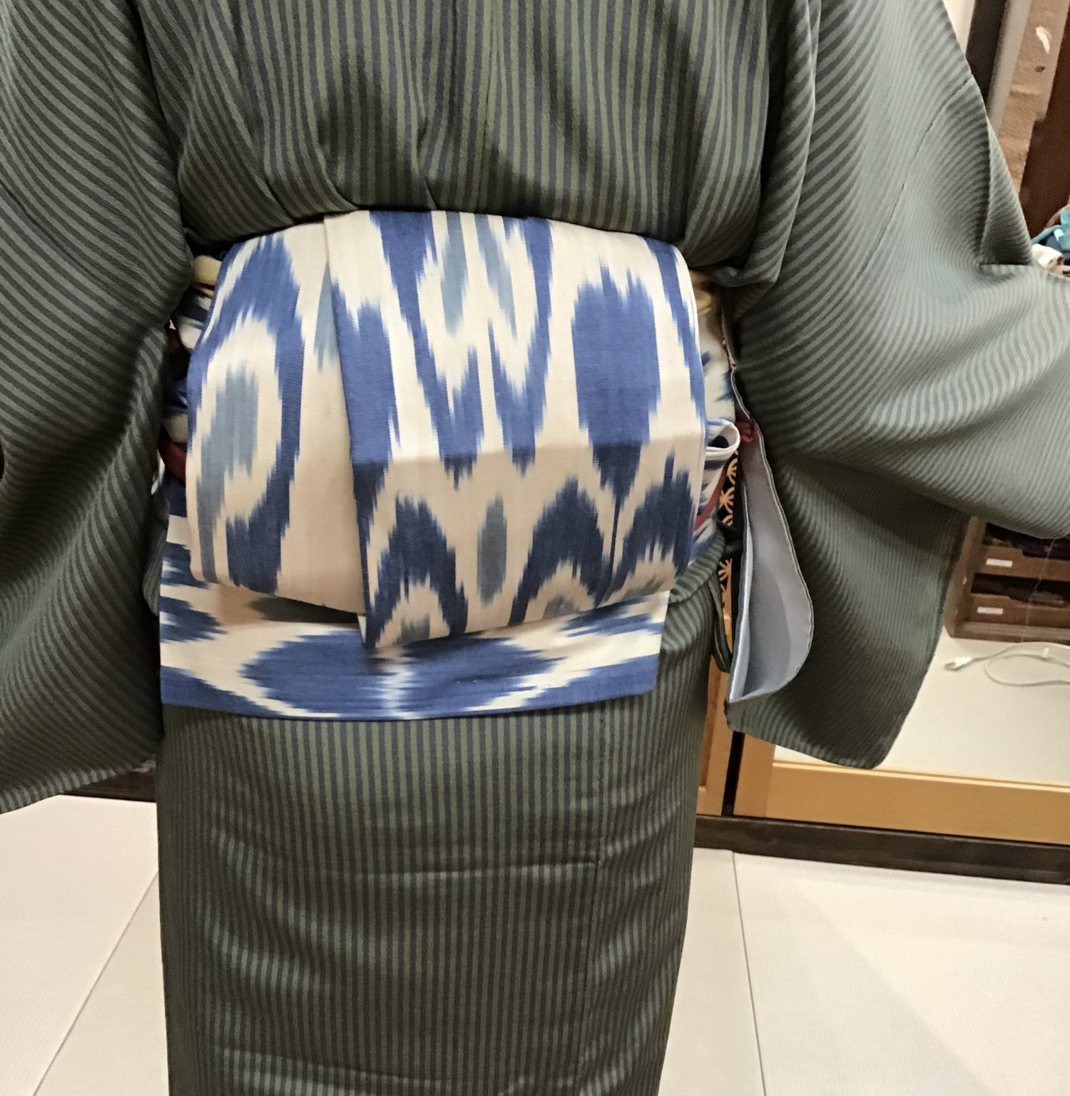 アドラスの半幅帯の、他の色で結んだ感じです。