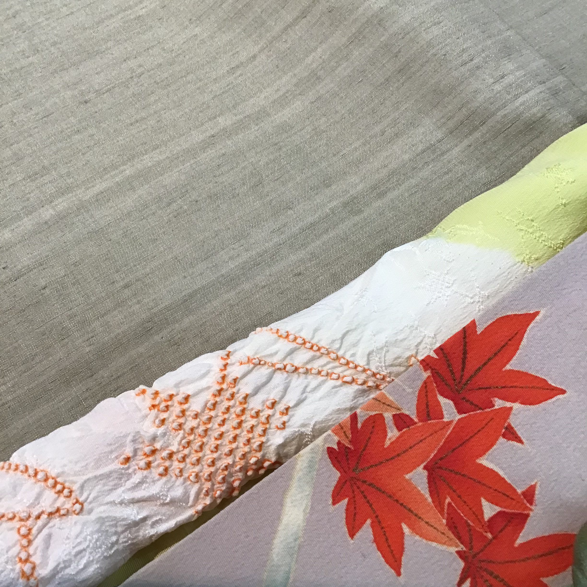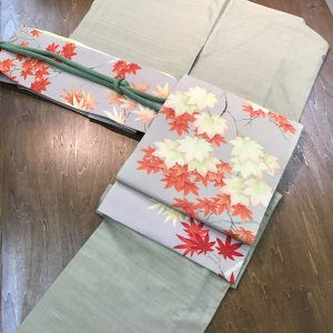 まずは、全てが美しい色合いの帯。赤く染まった紅葉を見事に表現しています。
